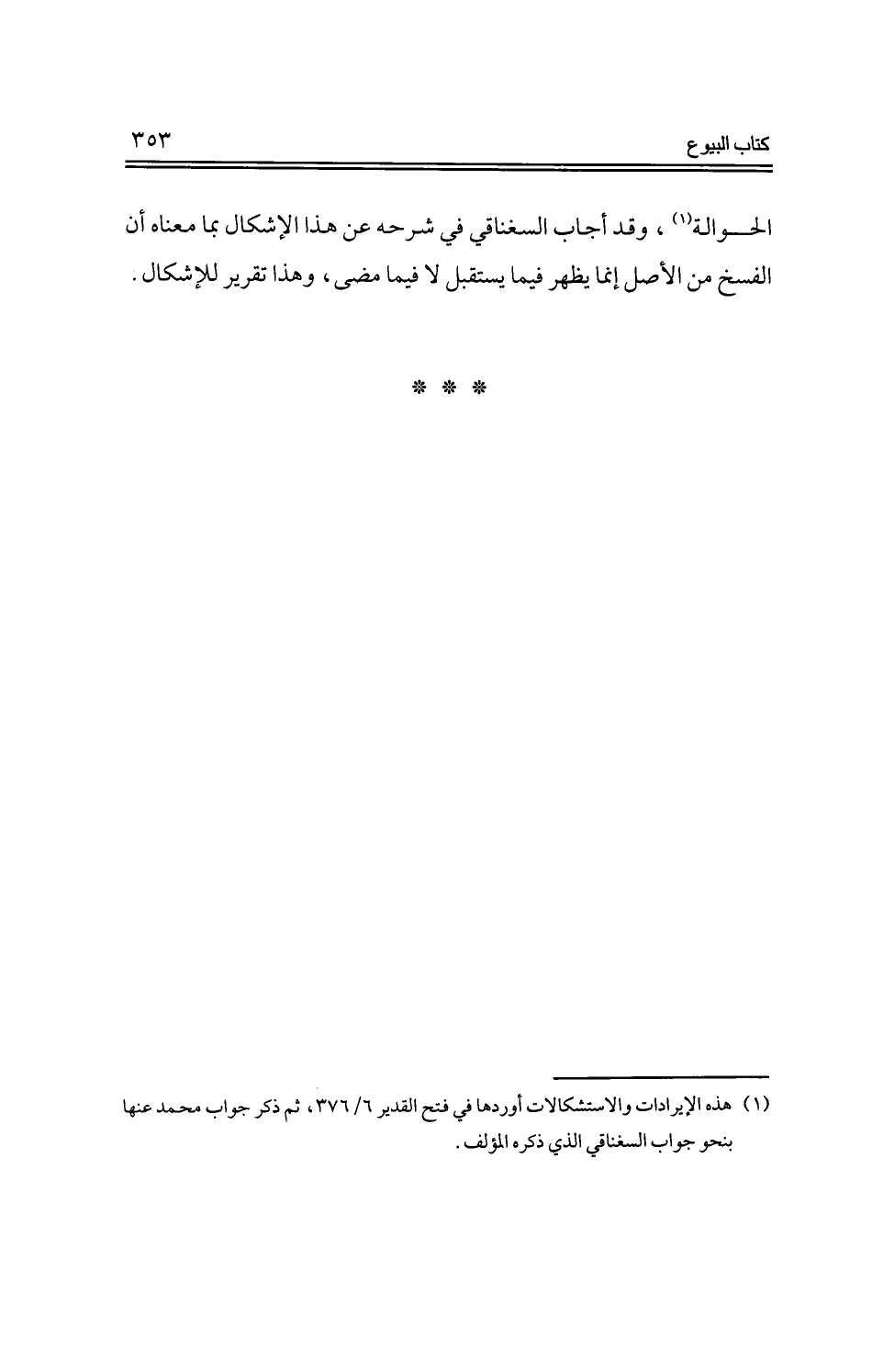 الحوالة، وقد أجاب السغناقي في شرحه عن هذا الإشكال بما معناه أن الفسخ من الأصل إنما يظهر فيما يستقبل لا فيما مضى، وهذا تقرير للإشكال.