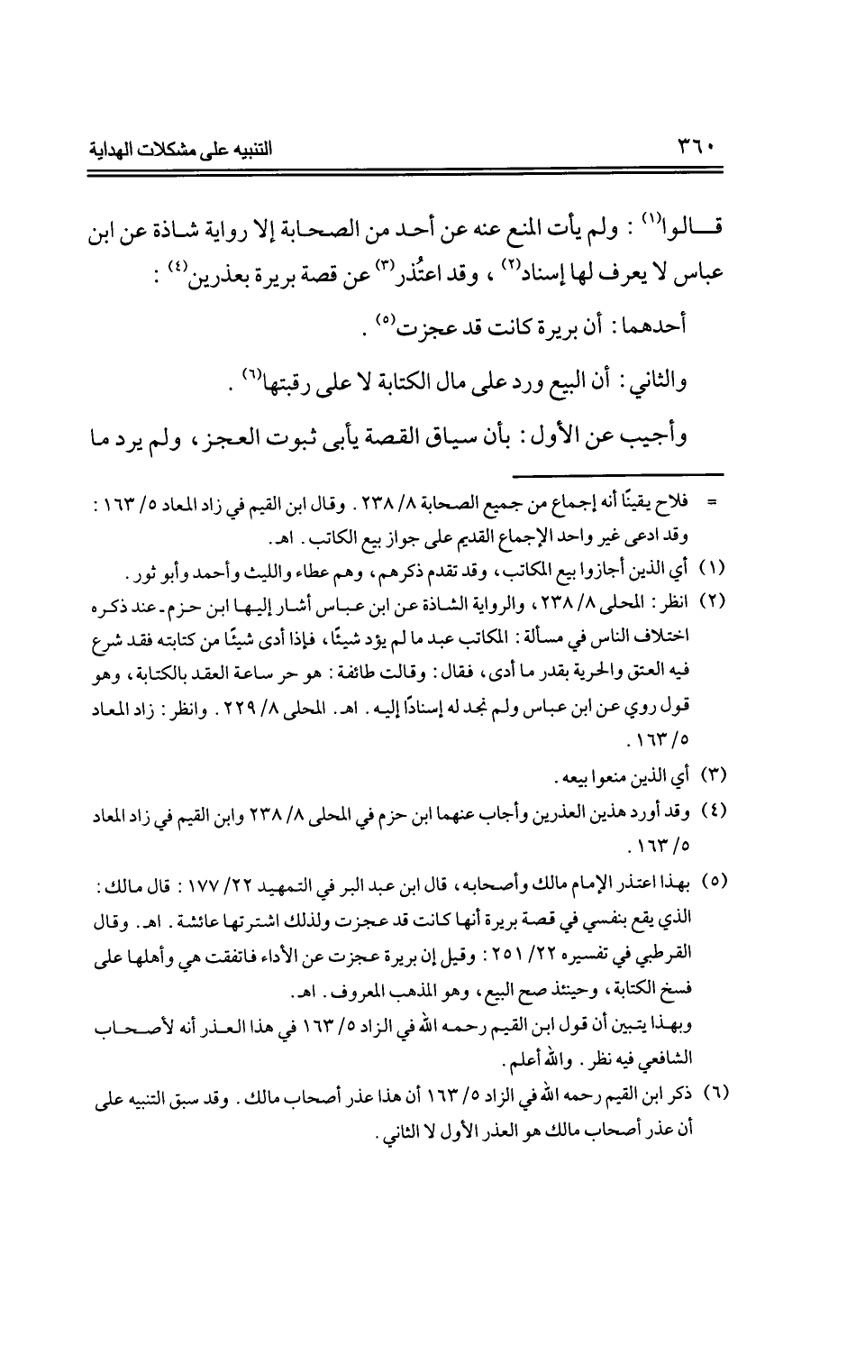 قالوا: ولم يأت المنع عنه عن أحد من الصحابة إلا رواية شاذة عن ابن عباس لا يعرف لها إسناد، وقد اعتذر عن قصة بريرة بعذرين: