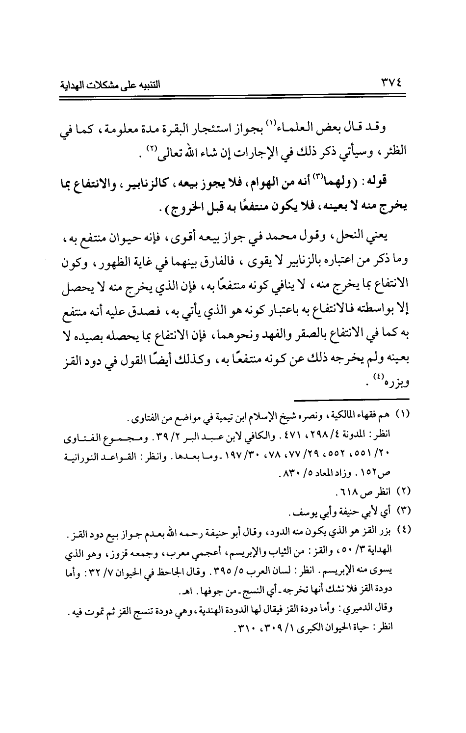 يعني النحل، وقول محمد في جواز بيعه أقوى، فإنه حيوان منتفع به، وما ذكر من اعتباره بالزنابير لا يقوى، فالفارق بينهما في غاية الظهور، وكون الانتفاع بما يخرج منه، لا ينافي كونه منتفعاً به، فإن الذي يخرج منه لا يحصل إلا بواسطته فالانتفاع به باعتبار كونه هو الذي يأتي به، فصدق عليه أنه منتفع به كما في الانتفاع بالصقر والفهد ونحوهما، فإن الانتفاع بما يحصله بصيده لا بعينه لم يخرجه ذلك عن كونه منتفعاً به، وكذلك أيضاً القول في دود القز وبزره.