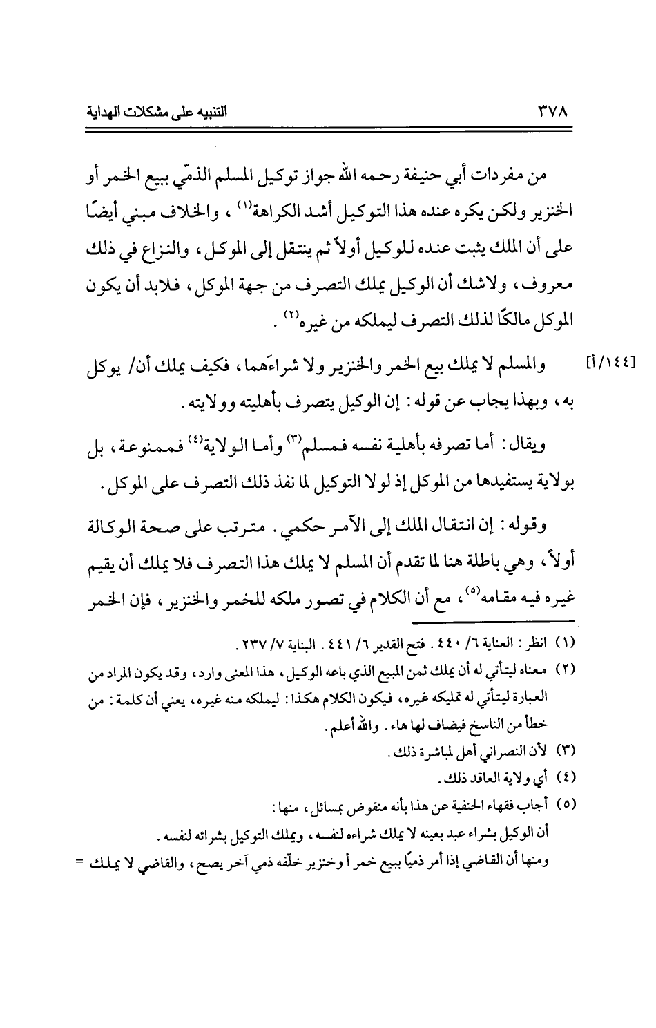 والمسلم لا يملك بيع الخمر والخنزير ولا شراءهما، فكيف يملك أن/ يوكل به، وبهذا يجاب عن قوله: إن الوكيل يتصرف بأهليته وولايته.