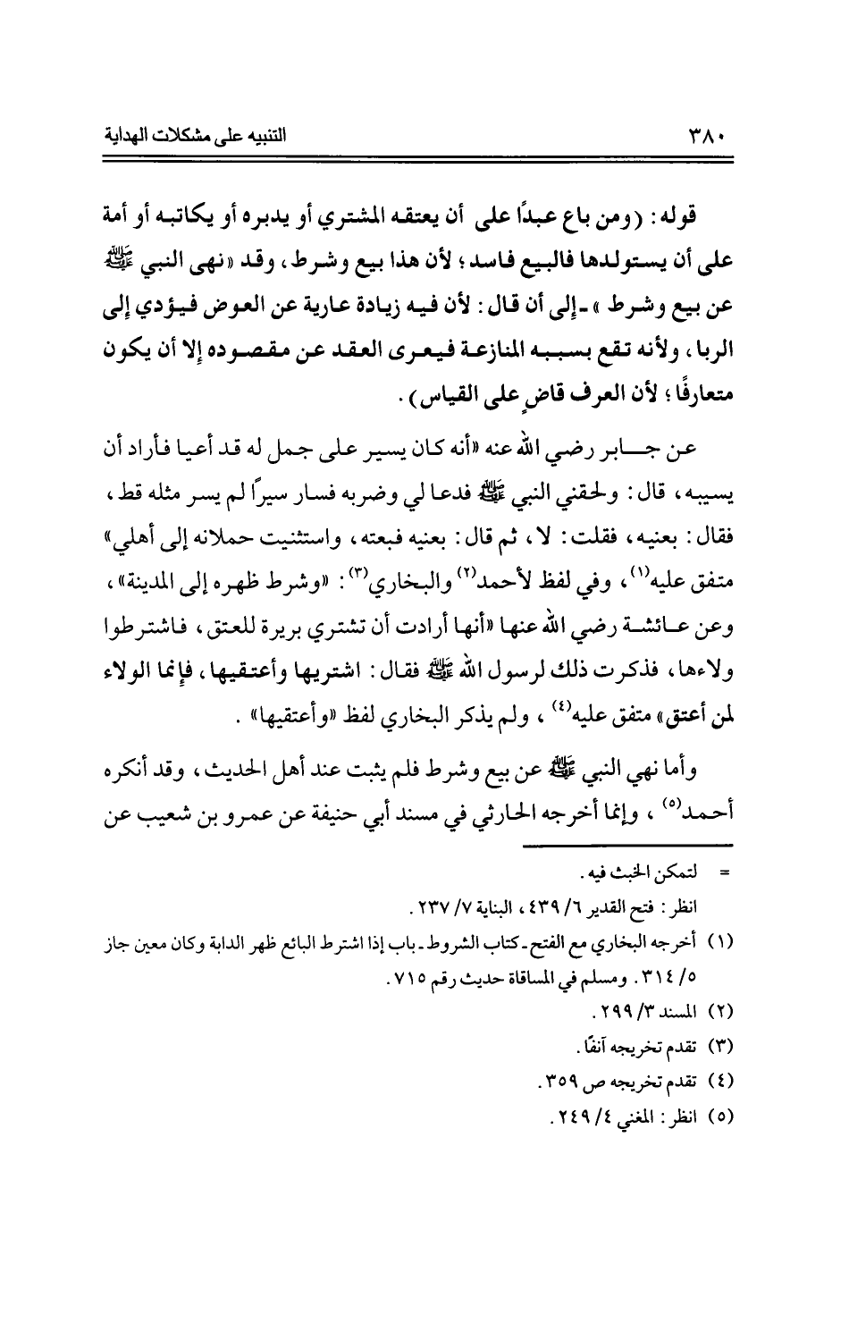 عن جابر رضي الله عنه "أنه كان يسير على جمل له قد أعيا فأراد أن يسيبه، قال: ولحقني النبي -صلى الله عليه وسلم- فدعا لي وضربه فسار سيراً لم يسر مثله قط، فقال: يعنيه، فقلت: لا، ثم قال: بعينه فبعته، واستثنيت حملانه إلى أهلي" متفق عليه، وفي لفظ لأحمد والبخاري: "وشرط ظهره إلى المدينة"، وعن عائشة رضي الله عنها "أنها أرادت أن تشتري بريرة للعتق، فاشترطوا ولاءها، فذكرت ذلك لرسول الله -صلى الله عليه وسلم- فقال: اشتريها وأعتقيها، فإنما الولاء لمن أعتق" متفق عليه، ولم يذكر البخاري لفظ "وأعتقيها".
