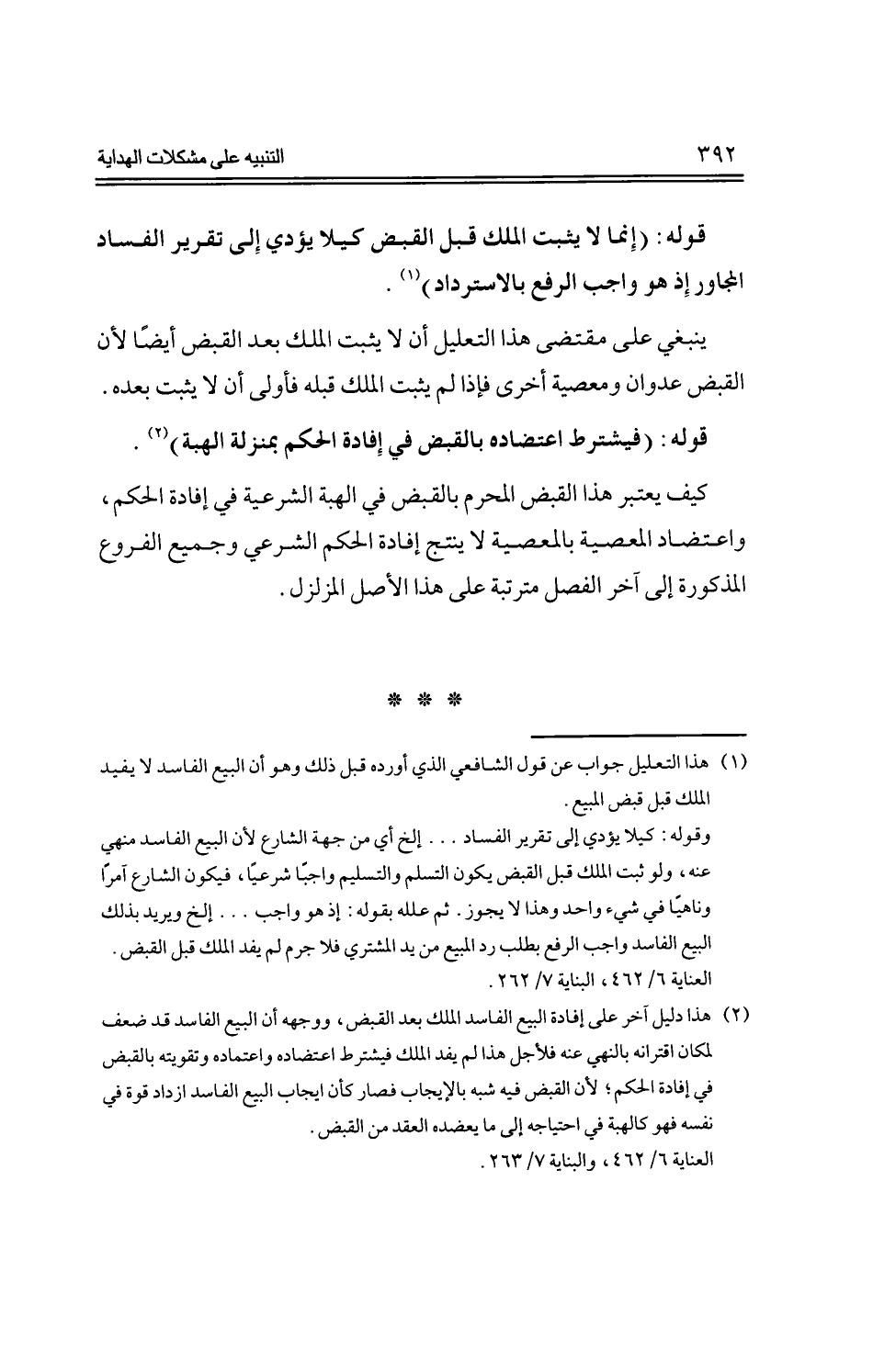 كيف يعتبر هذا القبض المحرم بالقبض في الهبة الشرعية في إفادة الحكم، واعتضاد المعصية بالمعصية لا ينتج إفادة الحكم الشرعي وجميع الفروع المذكورة إلى آخر الفصل مترتبة على هذا الأصل المزلزل.