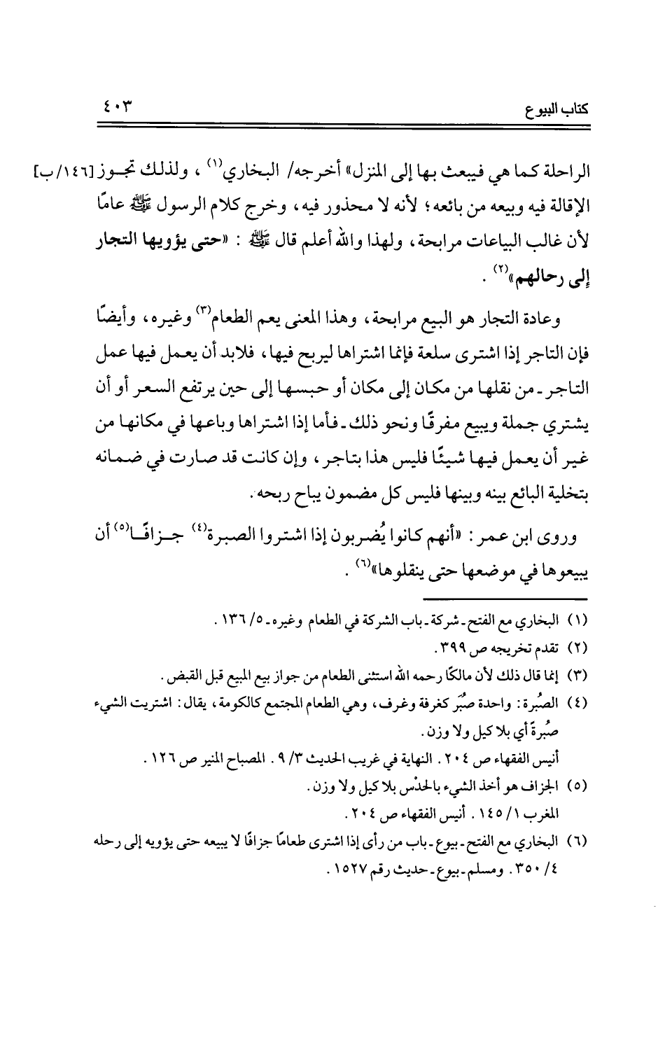 الراحلة كما هي فيبعث بها إلى المنزل" أخرجه /البخاري، ولذلك تجوز الإقالة فيه وبيعه من بائعه؛ لأنه لا محذور فيه، وخرج كلام الرسول -صلى الله عليه وسلم- عاماً لأن غالب البياعات مرابحة، ولهذا الله أعلم قال -صلى الله عليه وسلم-: "حتى يؤويها النجار إلى رحالهم".