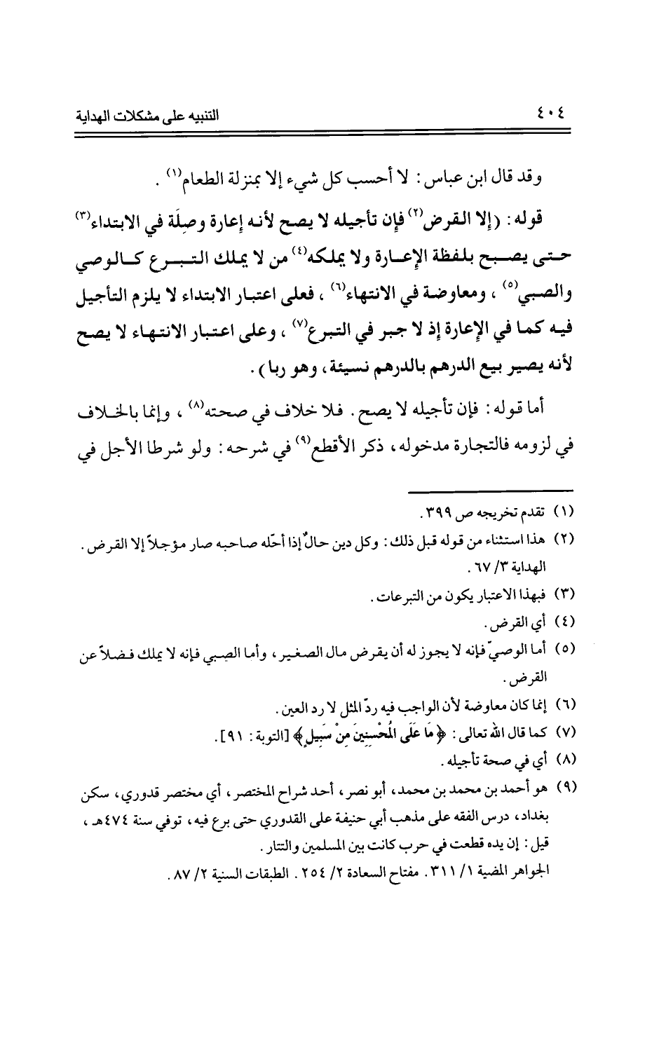 قوله: (إلا القرض فإن تأجيله لا يصح لأنه إعارة وصلة في الابتداء حتى يصبح بلفظة الإعارة ولا يملكه من لا يملك التبرع كالوصي والصبي، ومعاوضة في الانتهاء، فعلى اعتبار الابتداء لا يلزم التأجيل فيه كما في الإعارة إذ لا جبر في التبرع، وعلى اعتبار الانتهاء لا يصح لأنه يصير بيع الدرهم بالدرهم نسيئه، وهو ربا).