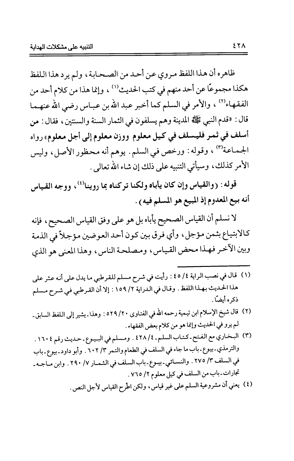 قوله: (والقياس وإن كان يأباه ولكنا تركناه بما روينا، ووجه القياس أنه بيع المعدوم إذ المبيع هو المسلم فيه).