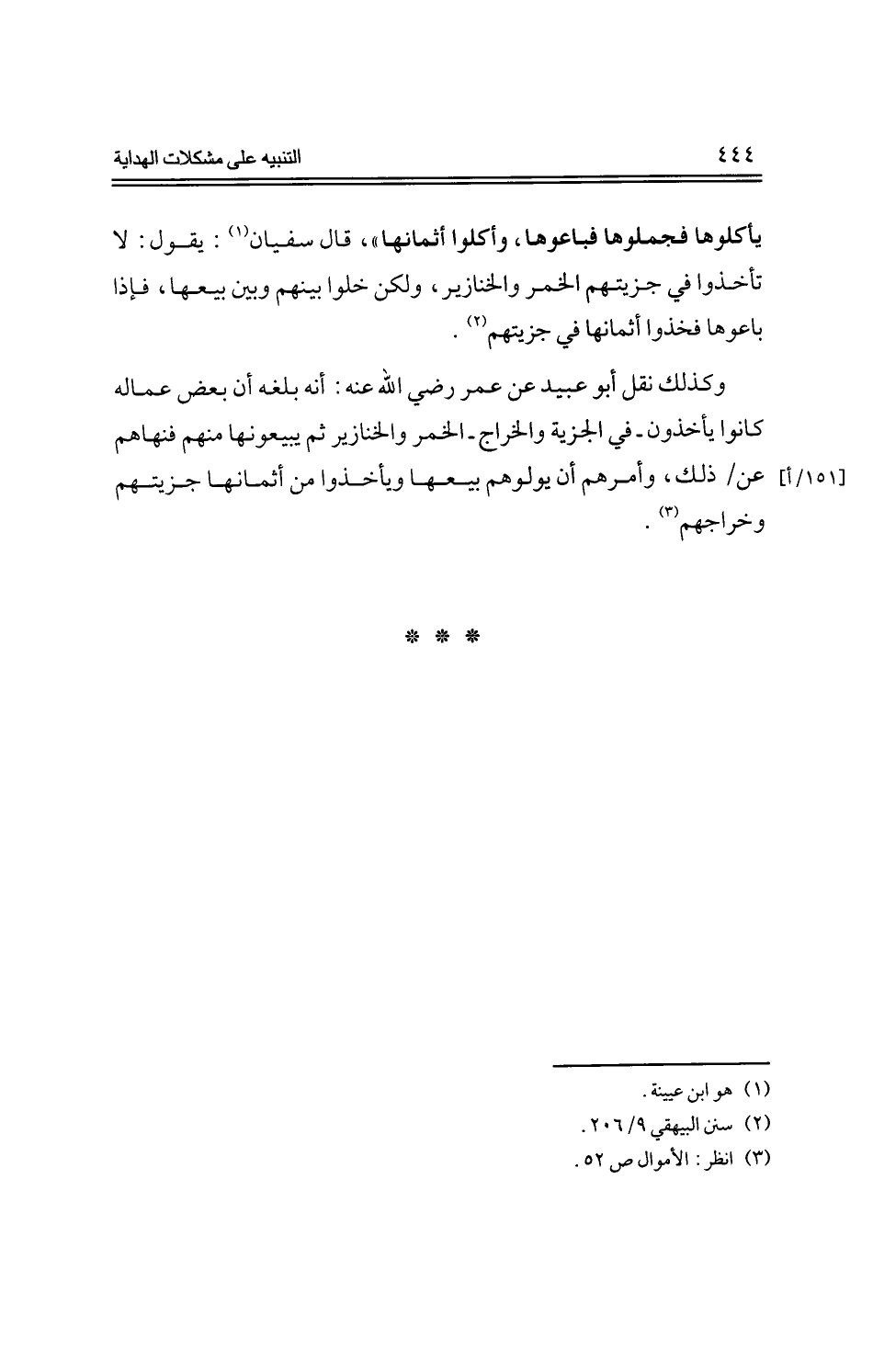 وكذلك نقل أبو عبيد عن عمر رضي الله عنه: أنه بلغه أن بعض عماله كانوا يأخذون -في الجزية والخراج- الخمر والخنازير ثم يبيعونها منهم فنهاهم عن /ذلك، وأمرهم أن يولوهم ببيعها ويأخذوا من أثمانها جزيتهم وخراجهم.