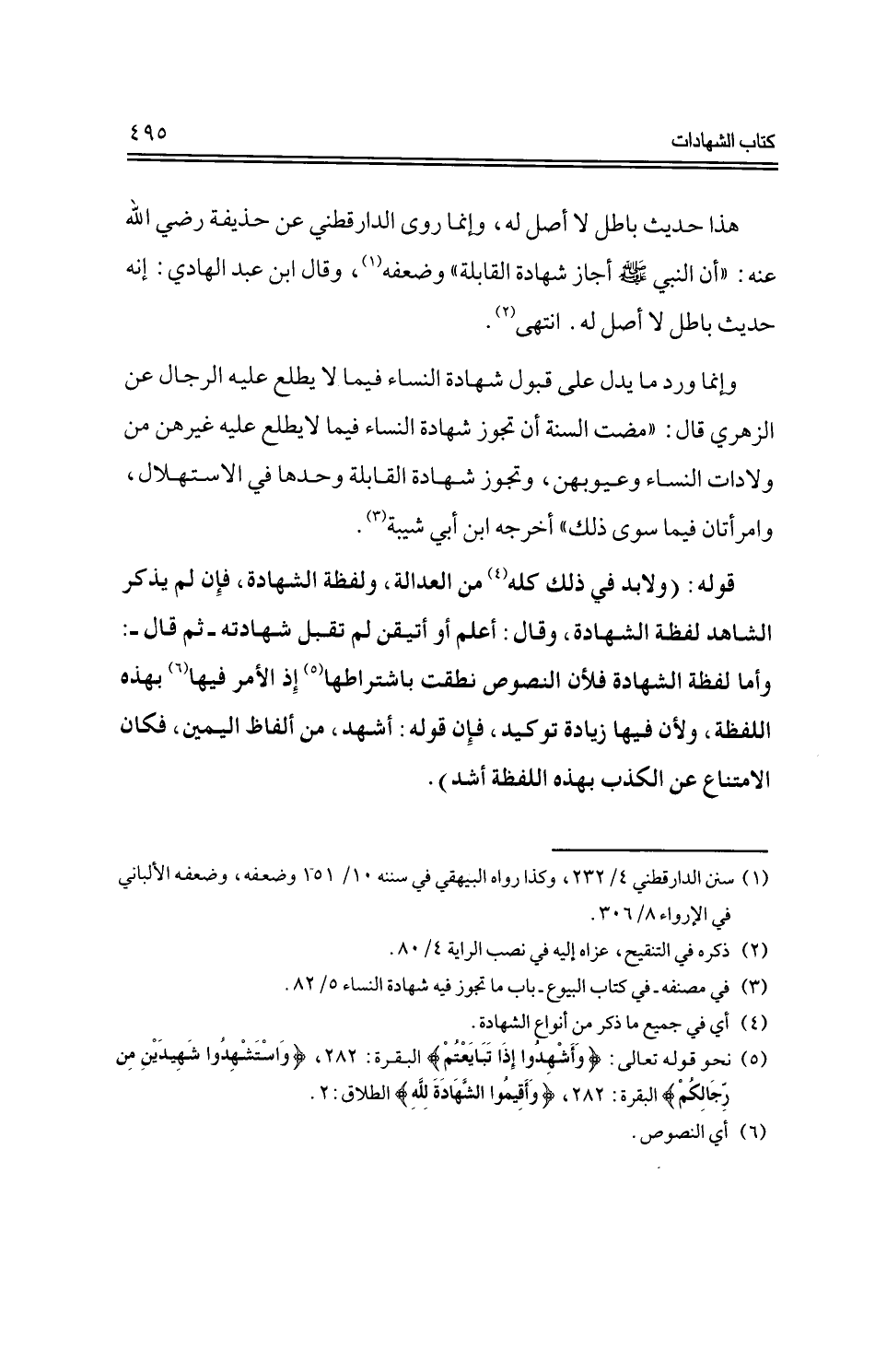 وإنما ورد ما يدل على قبول شهادة النساء فيما لا يطلع عليه الرجال عن الزهري قال: "مضت السنة أن تجوز شهادة النساء فيما لا يطلع عليه غيرهن من ولادات النساء وعيوبهن، وتجوز شهادة القابلة وحدها في الاستهلال، وامرأتان فيما سوى ذلك، أخرجه ابن أبي شيبة.