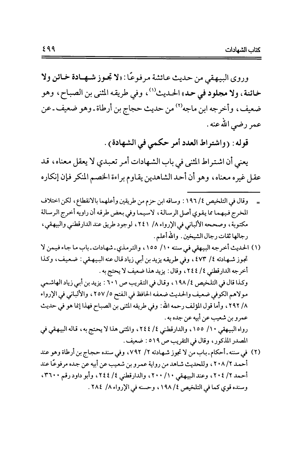قوله: (واشترط العدد أمر حكمي في الشهادة).