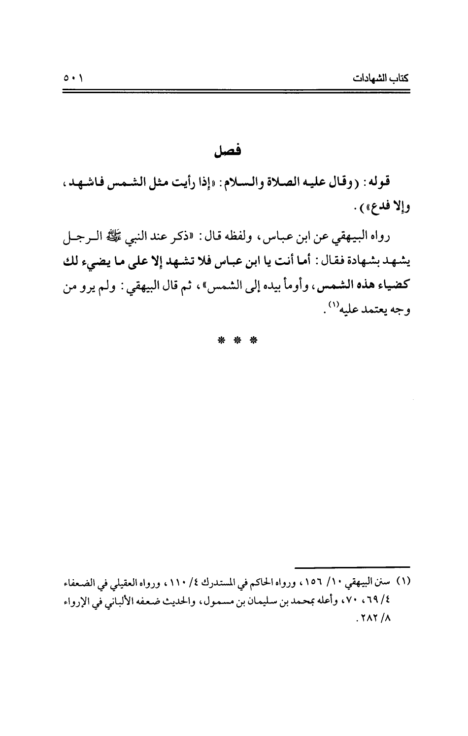 قوله: (وقال عليه الصلاة والسلام: "إذا رأيت مثل الشمس فاشهد، وإلا فدع").