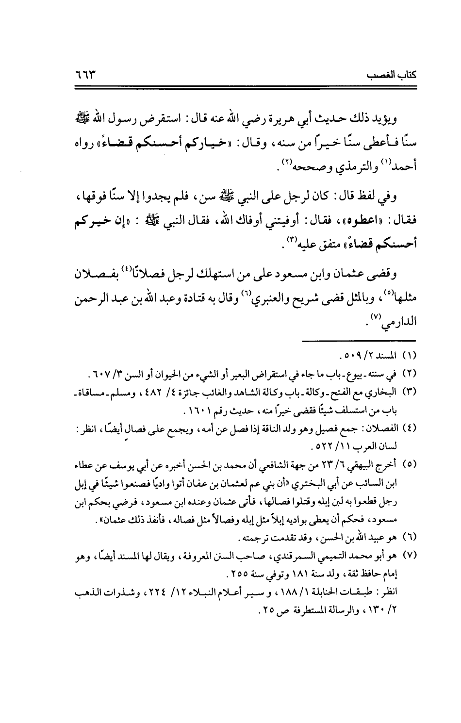 وقضى عثمان وابن مسعود على من استهلك لرجل فصلانًا بفصلان مثلها، وبالمثل قضى شريح والعنبري وقال به قتادة وعبد الله بن عبد الرحمن الدارمي.