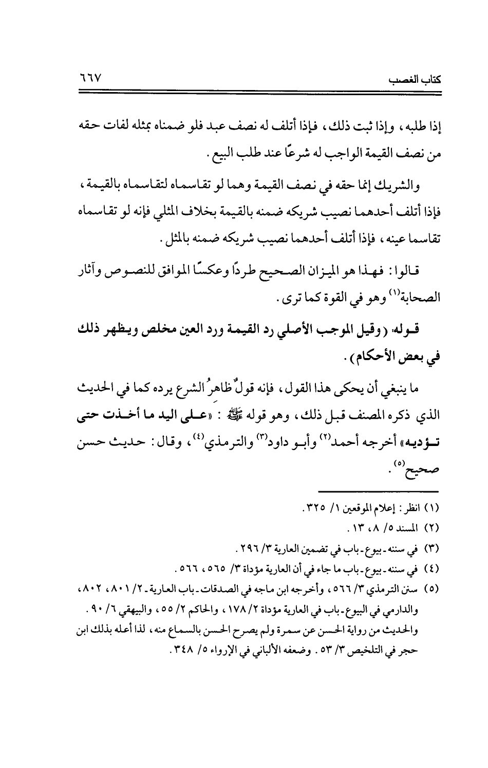 ما ينبغي أن يحكي هذا القول، فإنه قولٌ ظاهرُ الشرع يرده كما في الحديث الذي ذكره المصنف قبل ذلك، وقوله -صلى الله عليه وسلم-: «على اليد ما أخذت حتى تؤديه» أخرجه أحمد وأبو داود والترمذي، وقال: حديث حسن صحيح.