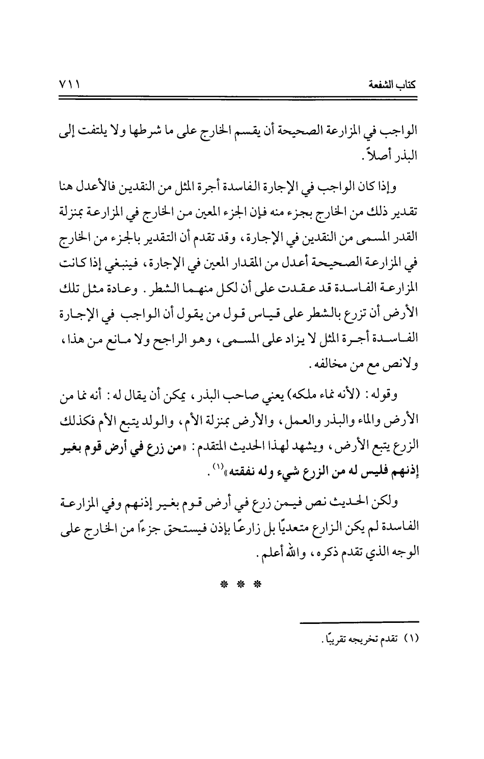 ولكن الحديث نص فيمن زرع في أرض قوم بغير إذنهم وفي المزارعة الفاسدة لم يكن الزارع متعديًا بل زارعًا بإذن فيستحق جزءًا من الخارج على الوجه الذي تقدم ذكره، والله أعلم.