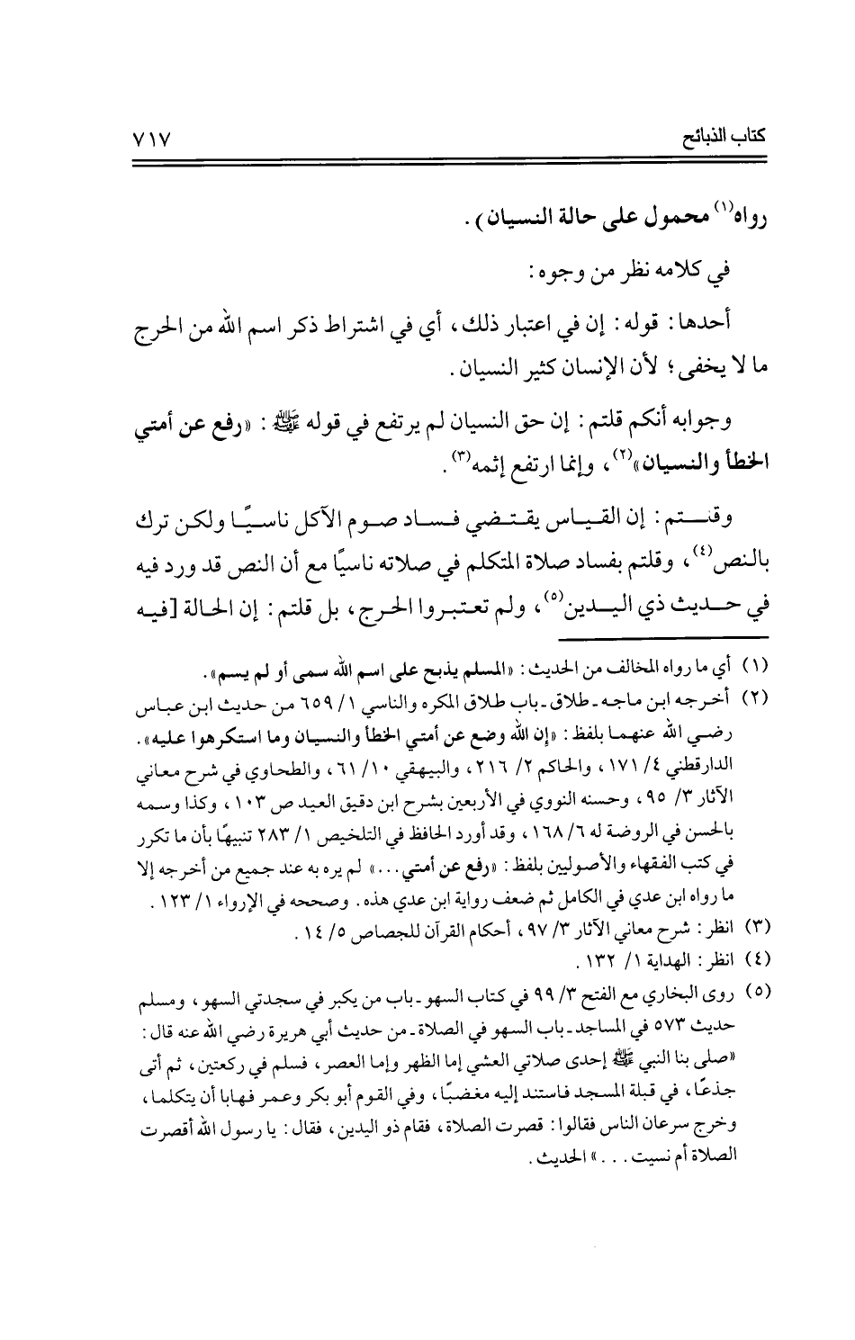 وقلتم: إن القياس يقتضي فساد صوم الآكل ناسيًا ولكن ترك بالنص، وقلتم بفساد صلاة المتكلم في صلاته ناسيًا مع أن النص قد ورد فيه في حديث ذي اليدين، ولم تعتبروا الحرج، بل قلتم: إن الحالة [فيه