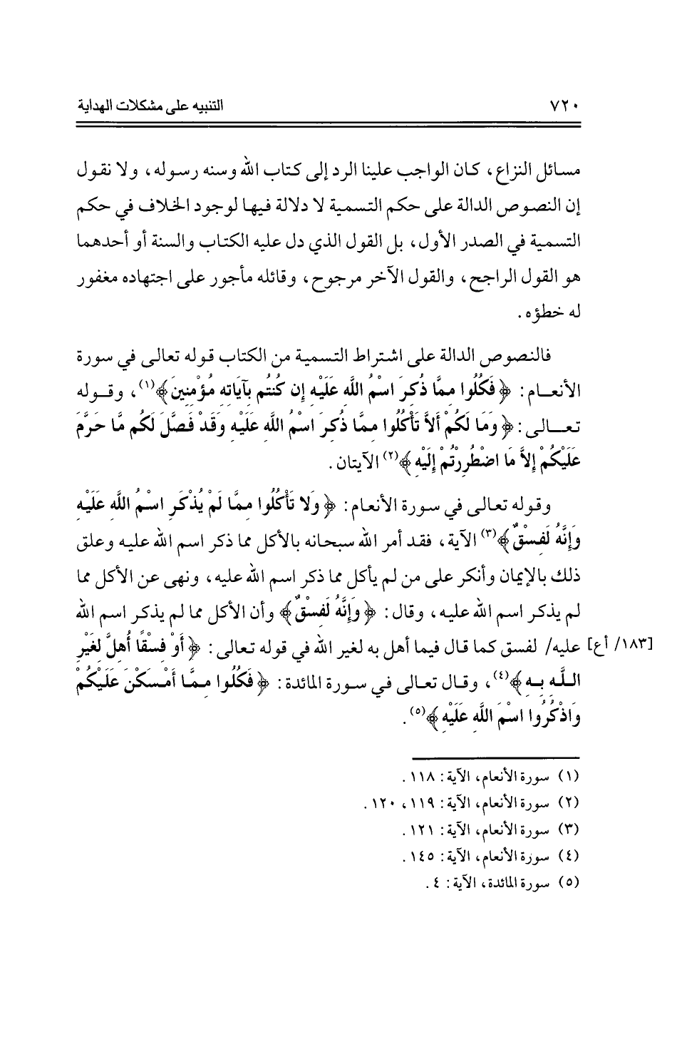 مسائل النزاع، كان الواجب علينا الرد إلى كتاب الله وسنة رسوله، ولا نقول إن النصوص الدالة على حكم التسمية لا دلالة فيها لوجود الخلاف في حكم التسمية في الصدر الأول، بل القول الذي دل عليه الكتاب والسنة أو أحدهما هو القول الراجح، والقول الآخر مرجوح، وقائله مأجور على اجتهاده مغفور له خطؤه.