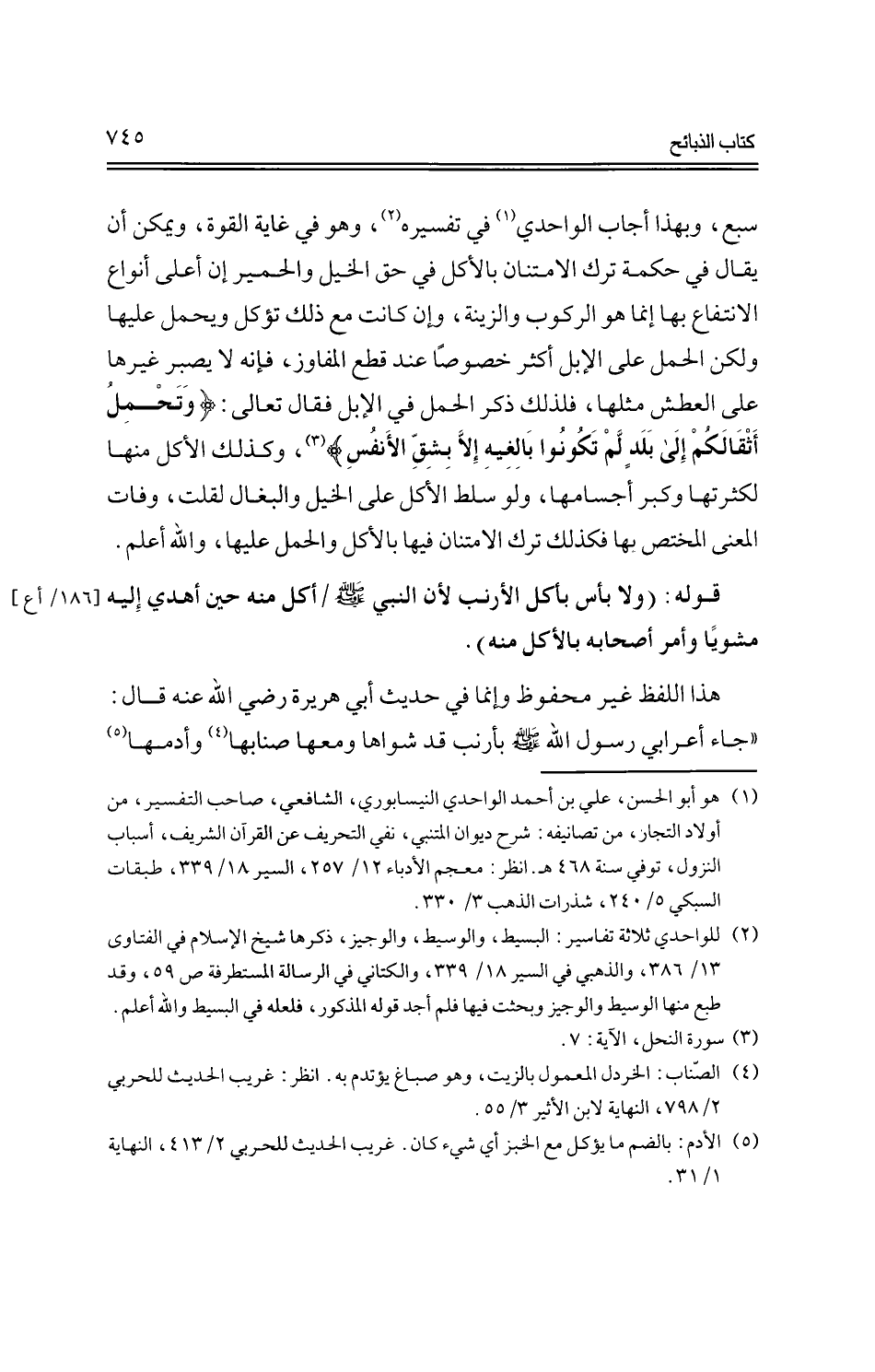 قوله: (ولا بأس بأكل الأرنب لأن النبي -صلى الله عليه وسلم-/ أكل منه حين أهدى إليه مشويًا وأمر أصحابه بالأكل منه).
