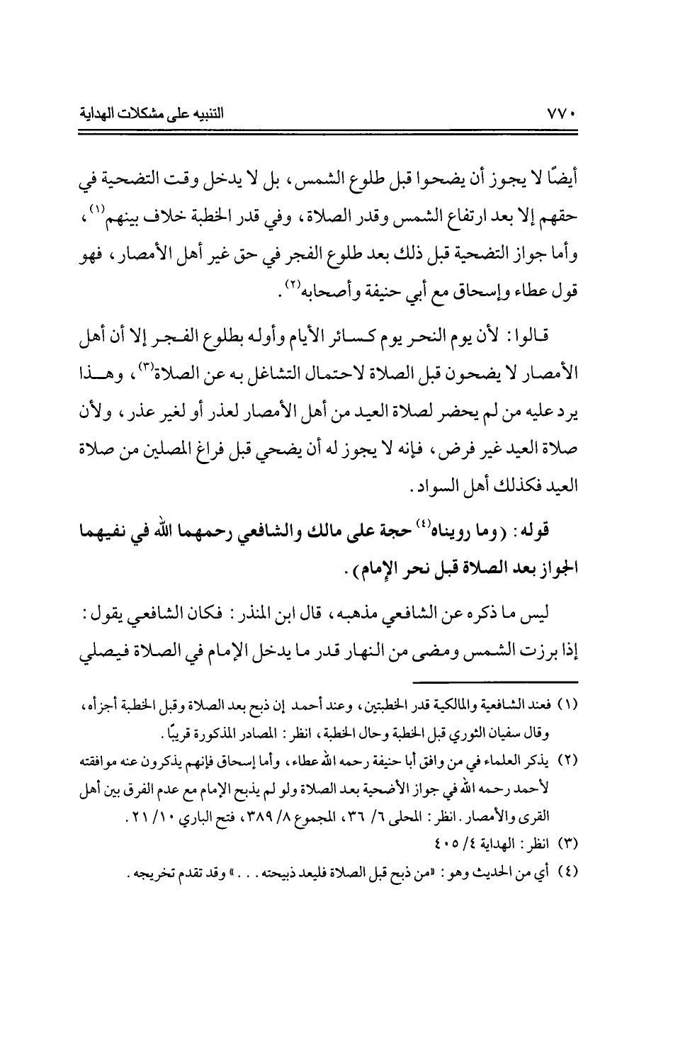 قوله: (وما رويناه حجة على مالك والشافعي رحمهما الله في نفيهما الجواز بعد الصلاة قبل نحر الإمام).