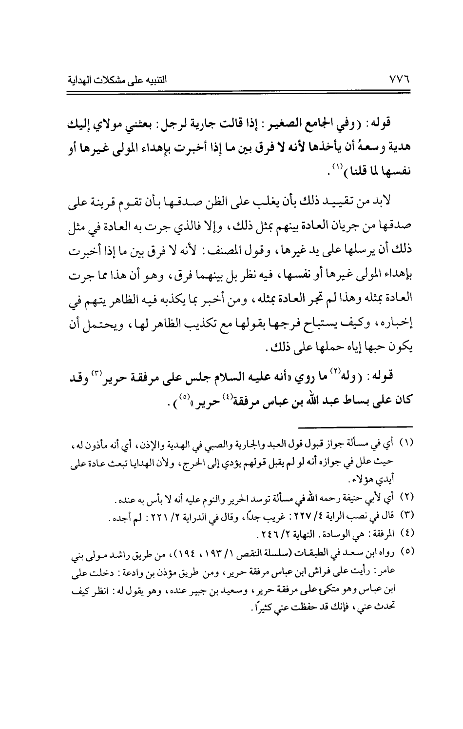 قوله: (وله ما روي "أنه عليه السلام جلس على مرفقة حرير وقد كان على بساط عبد الله بن عباس مرفقة حرير").