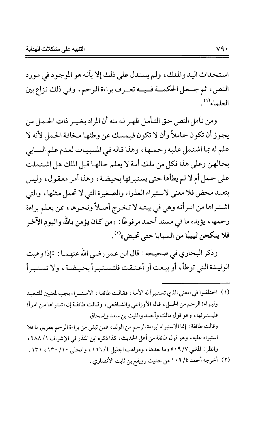 استحداث اليد والملك، ولم يستدل على ذلك إلا بأنه هو الموجود في مورد النص، ثم جعل الحكمة فيه تعرف براءة الرحم، وفي ذلك نزاع بين العلماء.