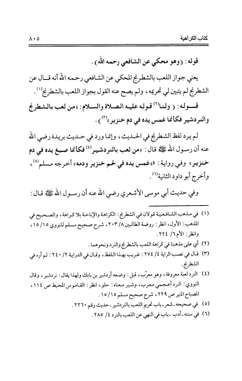 يعني جواز اللعب بالشطرنج المحكي عن الشافعي رحمه الله أنه قال عن الشطرنج لم يتبين لي تحريمه، ولم يصح عنه القول بجواز اللعب بالشطرنج.