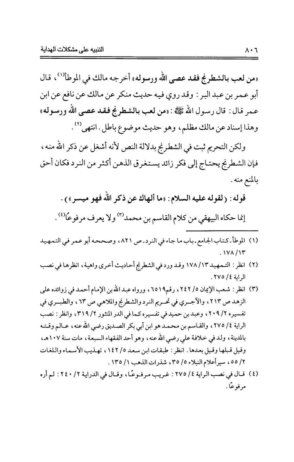 قوله: (لقوله عليه السلام: "ما ألهاك عن ذكر الله فهو ميسر").