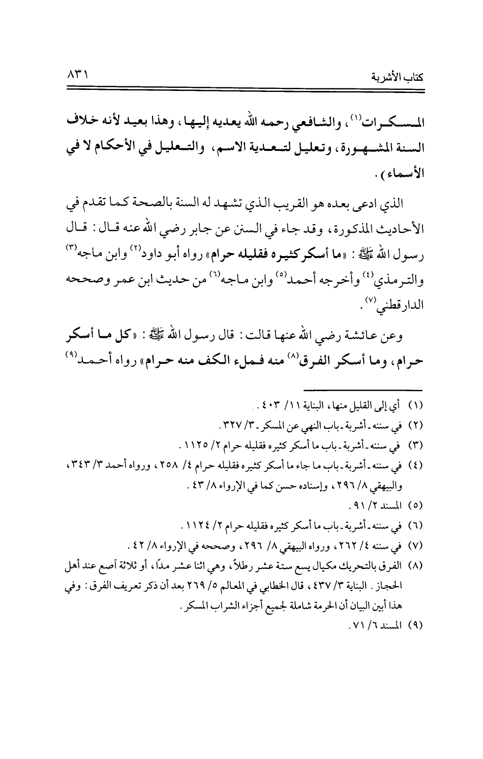 الذي ادعى بعده هو القريب الذي تشهد له السنة بالصحة كما تقدم في الأحاديث المذكورة، وقد جاء في السنن عن جابر -رضي الله عنه- قال: قال رسول الله -صلى الله عليه وسلم-: "ما أسكر كثيره فقليله حرام" رواه أبو داود وابن ماجه والترمذي وأخرجه أحمد وابن ماجه من حديث ابن عمر وصححه الدارقطني.