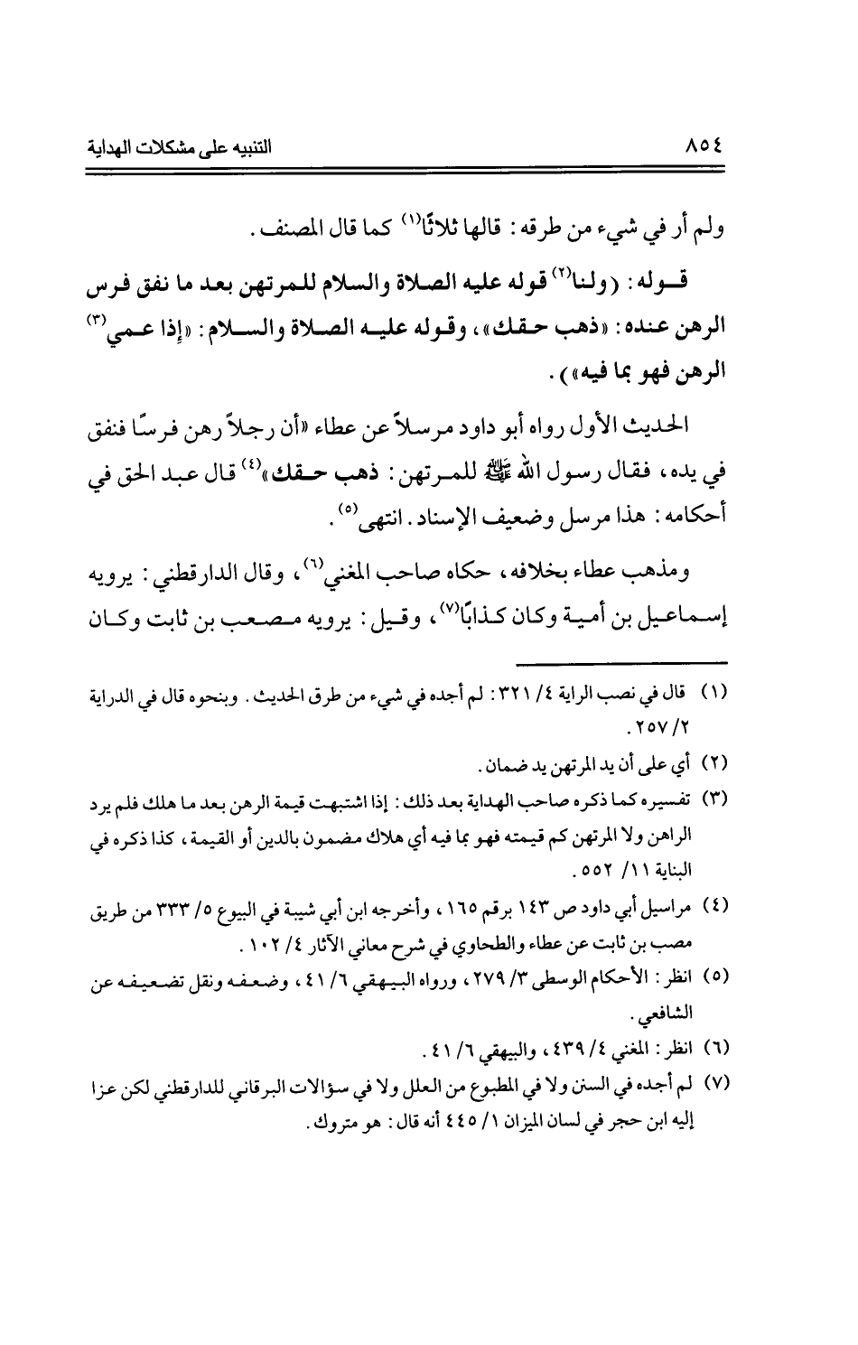 الحديث الأول رواه أبو داود مرسلاً عن عطاء "أن رجلاً رهن فرسًا فنفق في يده، فقال رسول الله -صلى الله عليه وسلم- للمرتهن: ذهب حقك" قال عبد الحق في أحكامه: هذا مرسل وضعيف الإسناد. انتهى.