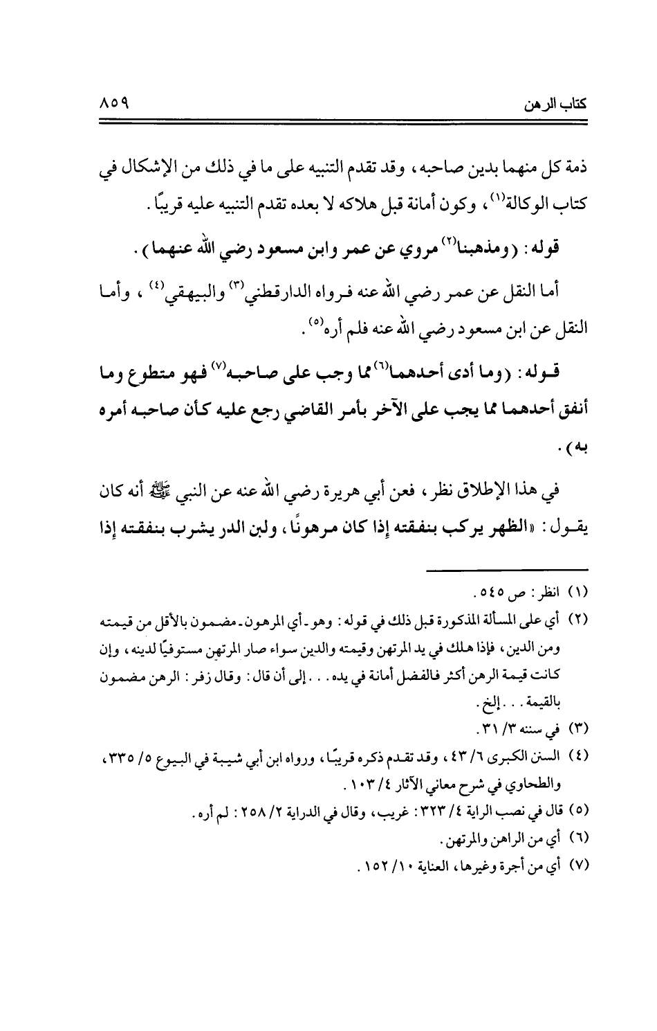 في هذا الإطلاق نظر، فعن أبي هريرة -رضي الله عنه- عن النبي -صلى الله عليه وسلم-أنه كان يقول: "الظهر يركب بنفقته إذا كان مرهونا، ولبن الدر يشرب بنفقته إذا