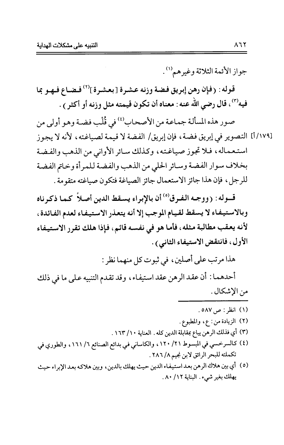 قوله: (فإن رهن إبريق فضة وزنه عشرة [بعشرة] فضاع فهو بما فيه، قال -رضي الله عنه-: معناه أن تكون قيمته مثل وزنه وأكثر).