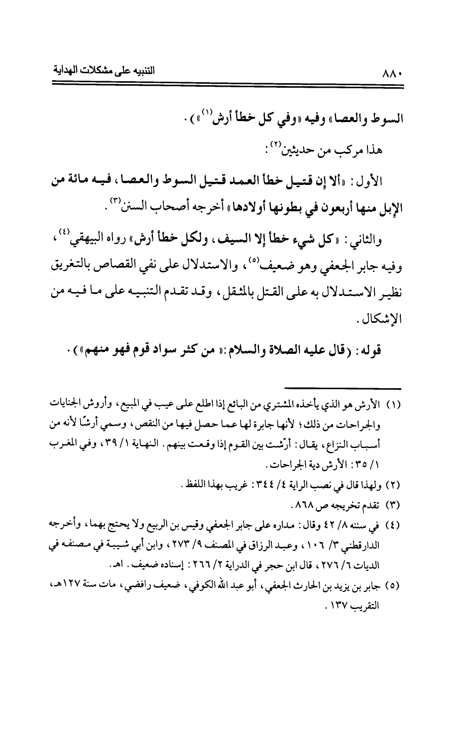 الأول: "ألا إن قتيل خطأ العمد قتيل السوط والعصا، فيه مائة من الإبل منها أربعون في بطونها أولادها" أخرجه أصحاب السنن.