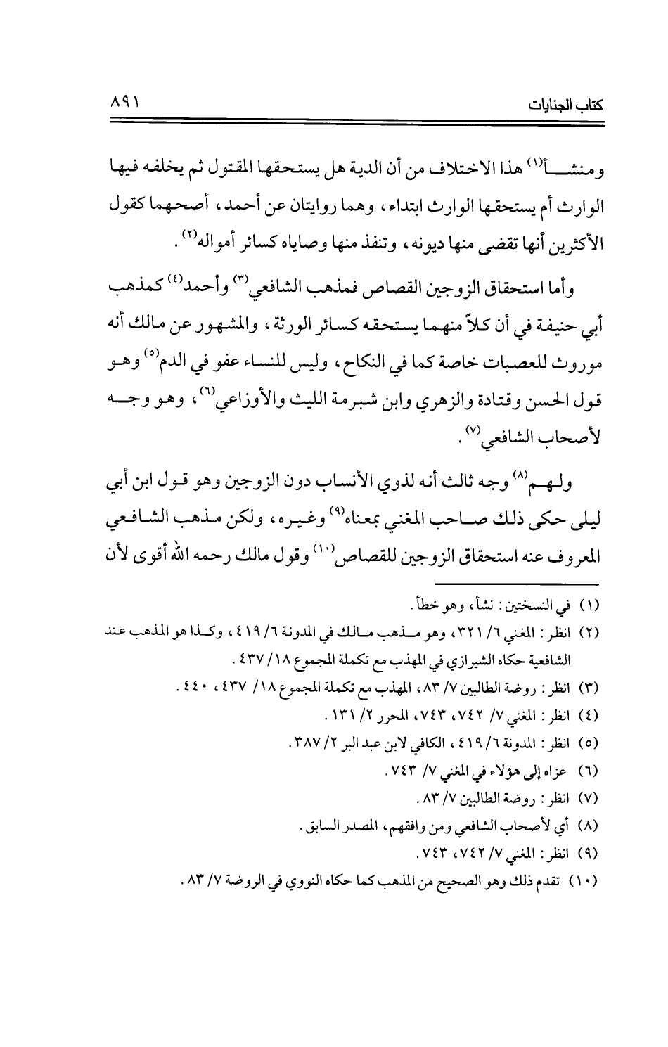 وأما استحقاق الزوجين القصاص فمذهب الشافعي وأحمد كمذهب أبي حنيفة في أن كلاً منهما يستحقه كسائر الورثة، والمشهور عن مالك أنه موروث للعصبات خاصة كما في النكاح، وليس للنساء عفو في الدم وهو قول الحسن وقتادة والزهري وابن شبرمة الليث والأوزاعي، وهو وجه لأصحاب الشافعي.