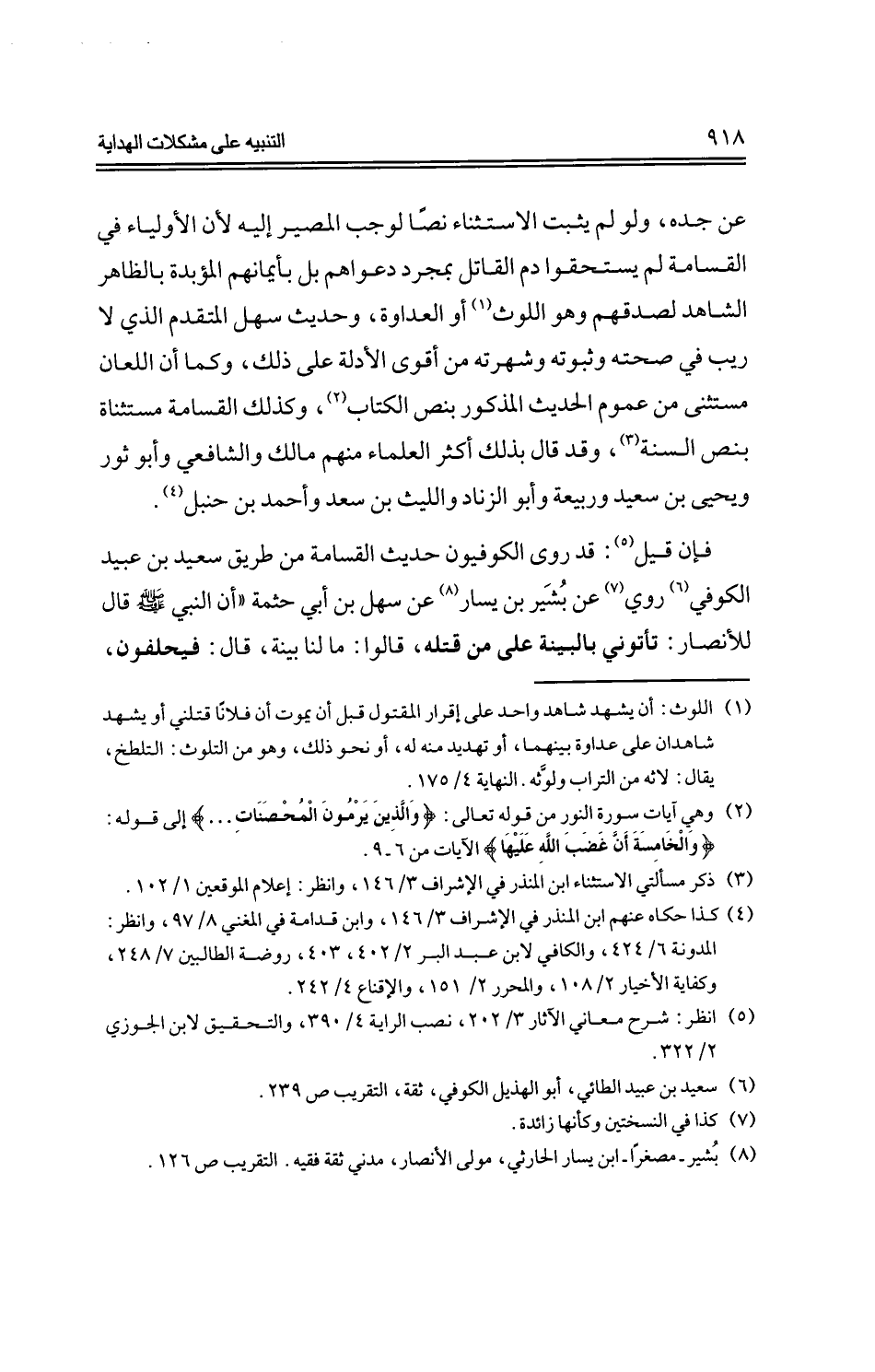 فإن قيل: قد روى الكوفيون حديث القسامة من طريق سعيد بن عبيد الكوفي روي عن بشير بن يسار عن سهل بن أبي حثمة "أن النبي -صلى الله عليه وسلم- قال للأنصار: تأتوني بالبينة على من قتله، قالوا: ما لنا ببينة، قال: فيحلفون،