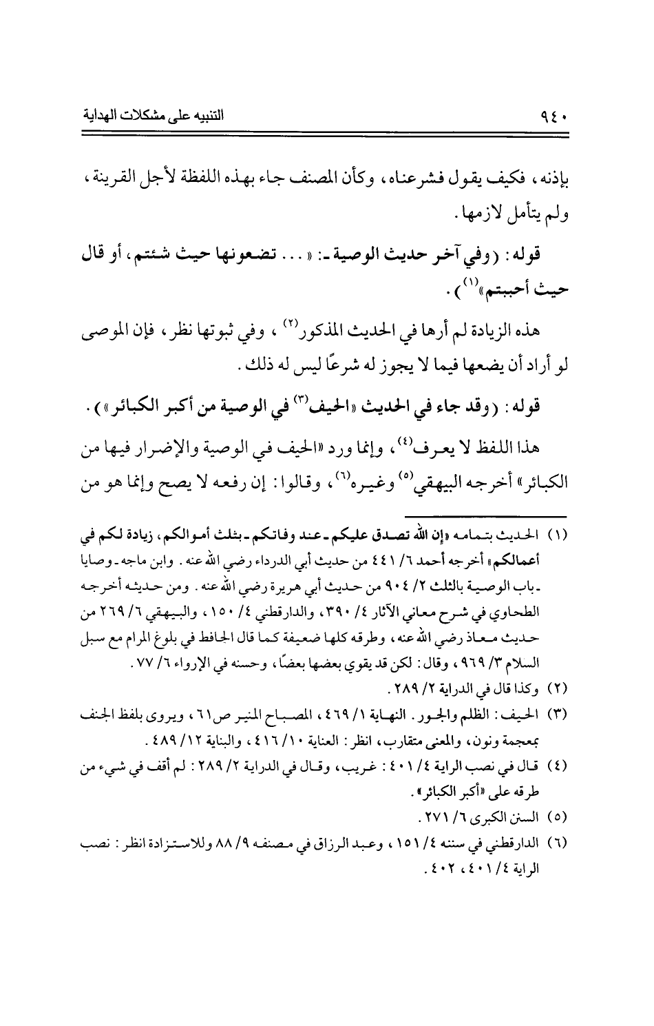 قوله: (وقد جاء في الحديث "الحيف في الوصية من أكبر الكبائر").