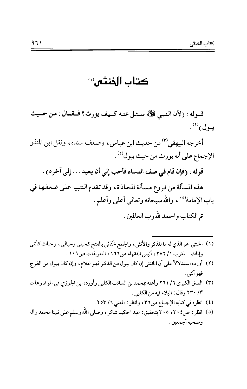 قوله: (لأن النبي -صلى الله عليه وسلم- سئل عنه كيف يورث؟ فقال: من حيث يبول).