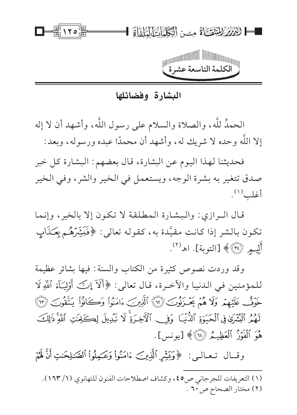 الكلمة التاسعة عشرة: البشارة وفضائلها