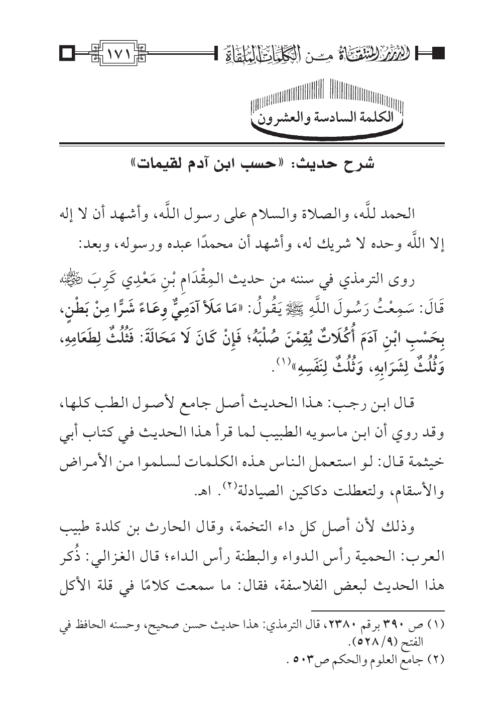 الكلمة السادسة والعشرون: شرح حديث: «حسب ابن آدم لقيمات»