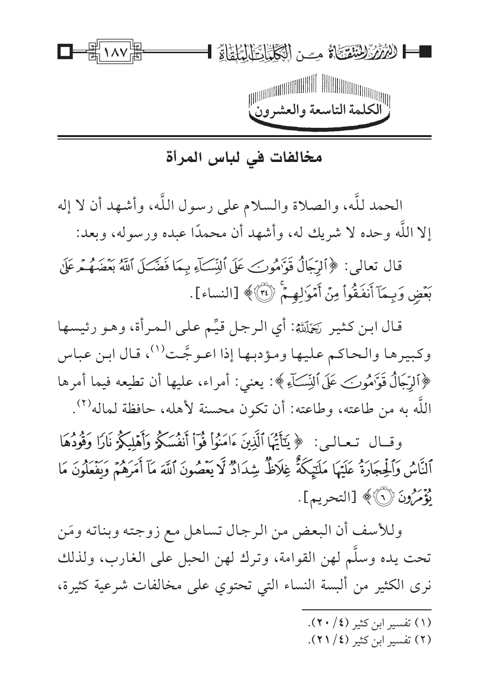 الكلمة التاسعة والعشرون: مخالفات في لباس المرأة