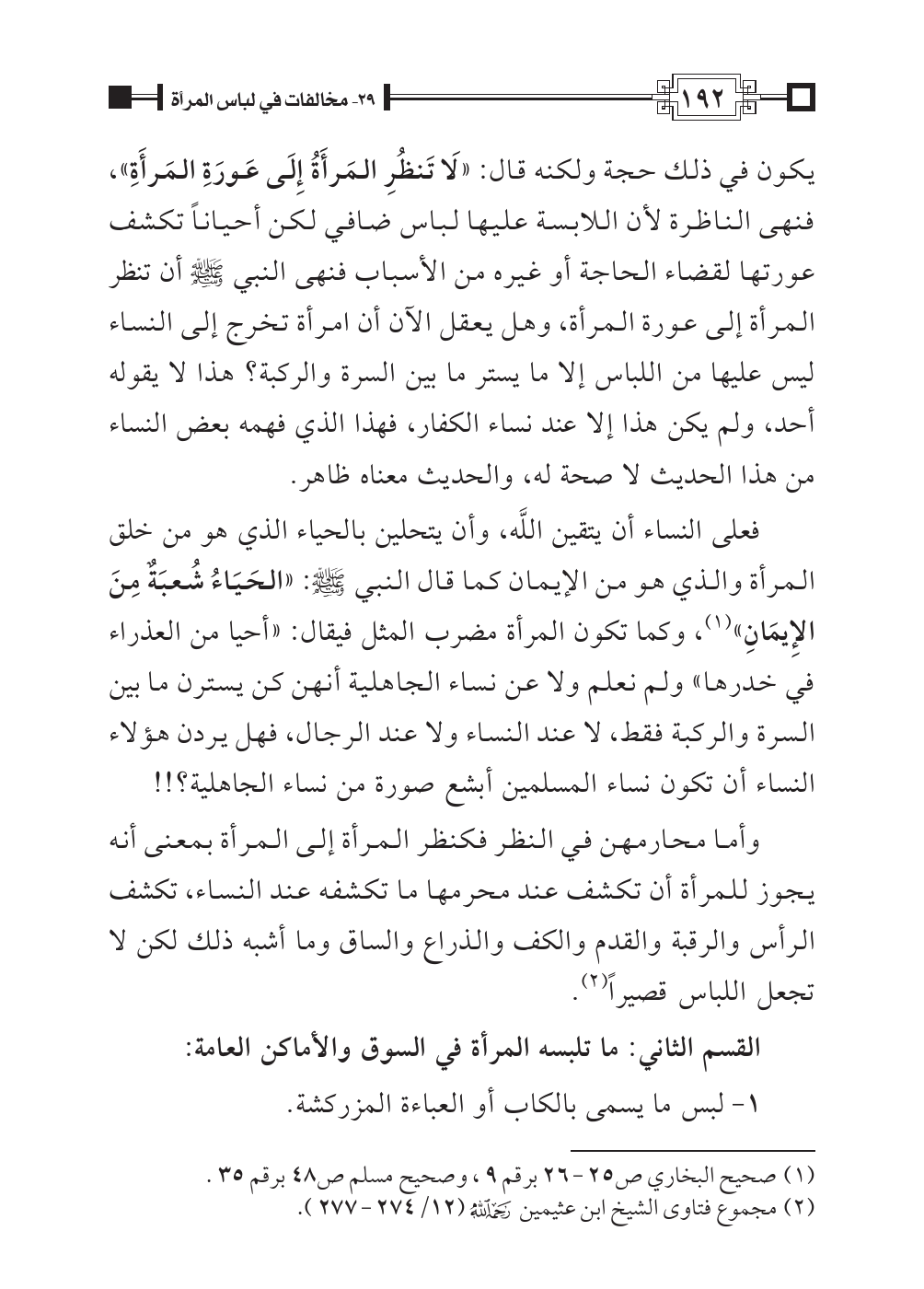 القسم الثاني: ما تلبسه المرأة في السوق والأماكن العامة: