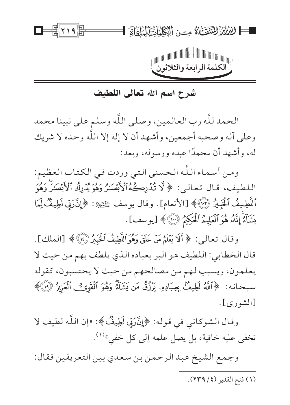 الكلمة الرابعة والثلاثون: شرح اسم الله تعالى اللطيف