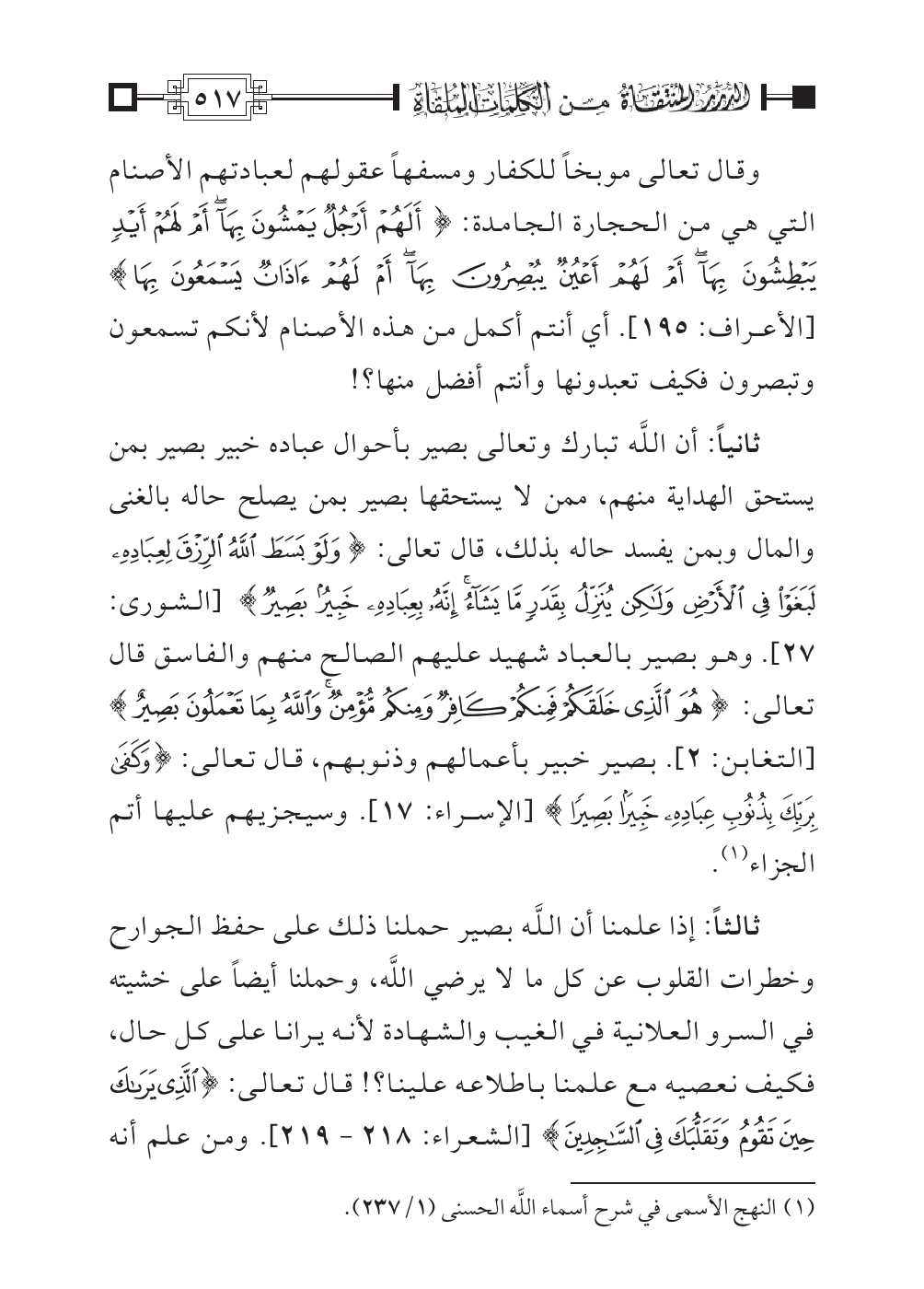 (¬١) النهج الأسمى في شرح أسماء اللَّه الحسنى (١/ ٢٣٧).