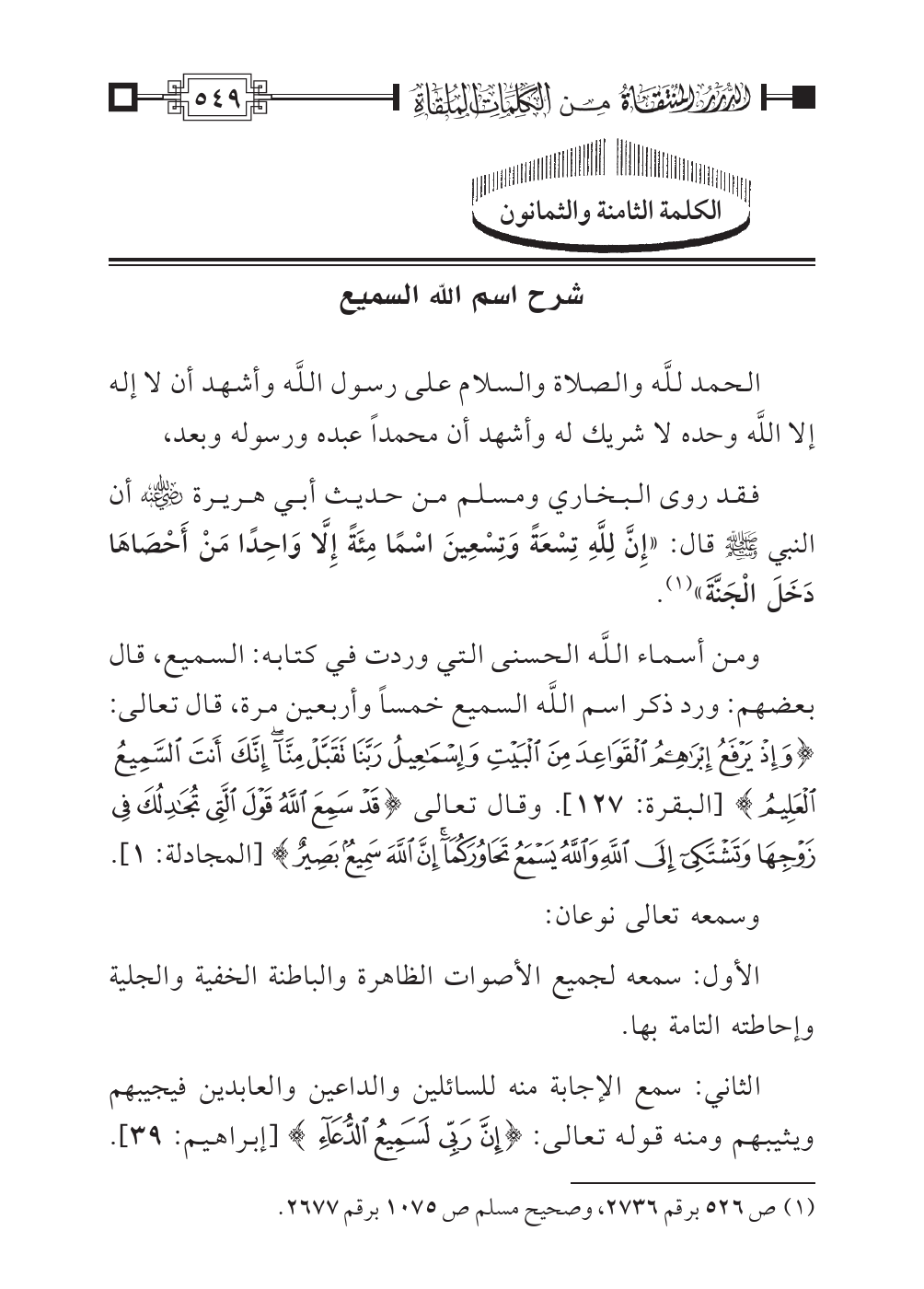 الكلمة الثامنة والثمانون: شرح اسم الله السميع