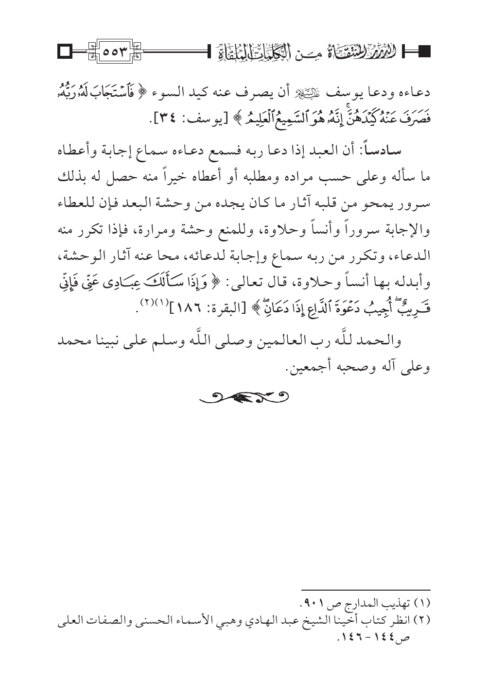 (¬٢) انظر كتاب أخينا الشيخ عبد الهادي وهبي الأسماء الحسنى والصفات العلى ص: ١٤٤ - ١٤٦.