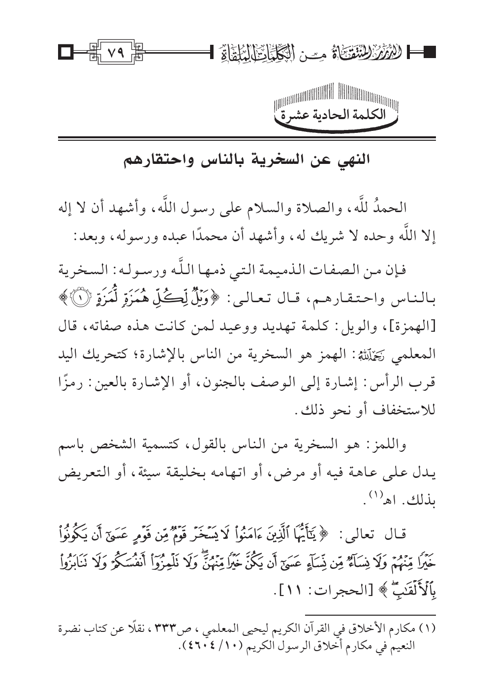 الكلمة الحادية عشرة: النهي عن السخرية بالناس واحتقارهم
