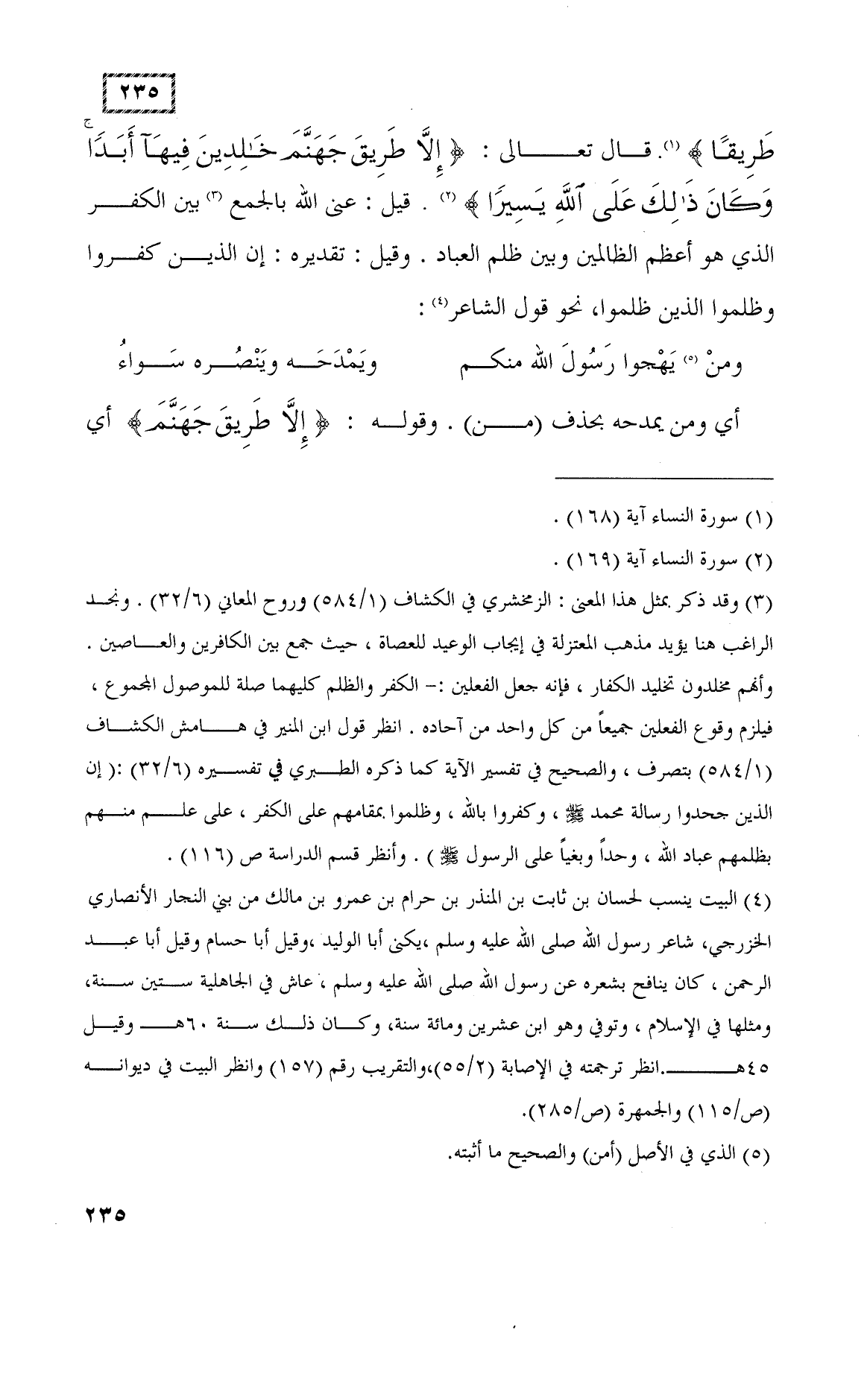 قوله تعالى: (إِنَّ الَّذِينَ كَفَرُوا وَظَلَمُوا لَمْ يَكُنِ اللَّهُ لِيَغْفِرَ لَهُمْ وَلَا لِيَهْدِيَهُمْ طَرِيقًا (168) إِلَّا طَرِيقَ جَهَنَّمَ خَالِدِينَ فِيهَا أَبَدًا وَكَانَ ذَلِكَ عَلَى اللَّهِ يَسِيرًا (169)