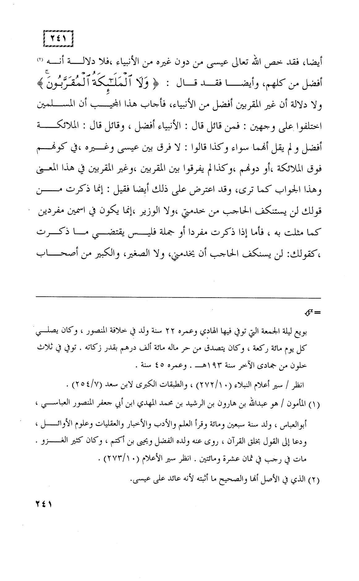 ولا دلالة أن غير القربين أفضل من الأنبياء، فأجاب هذا المجيب أن المسلمين