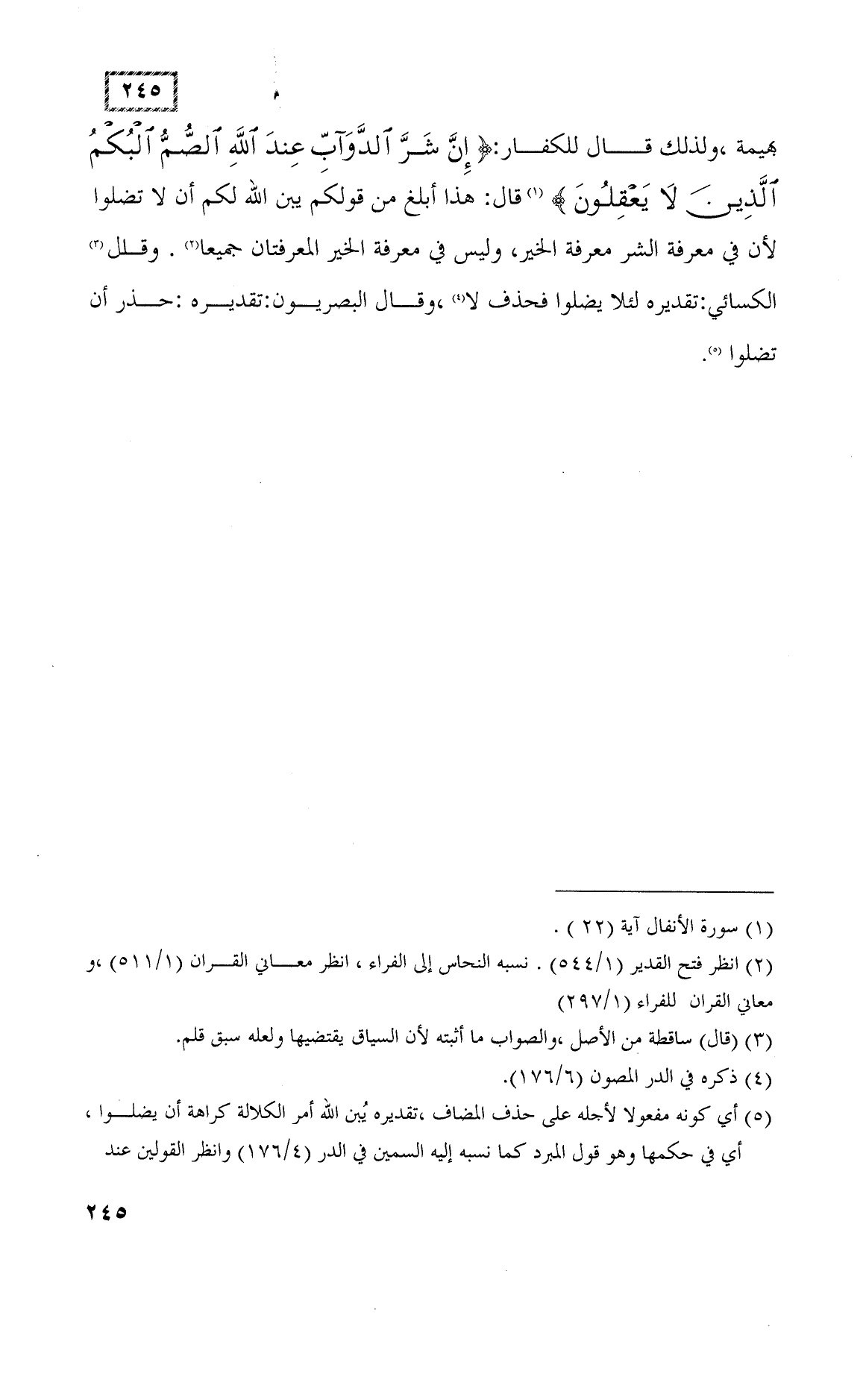 وقال البصريون: تقديره: حذر أن تضلوا.