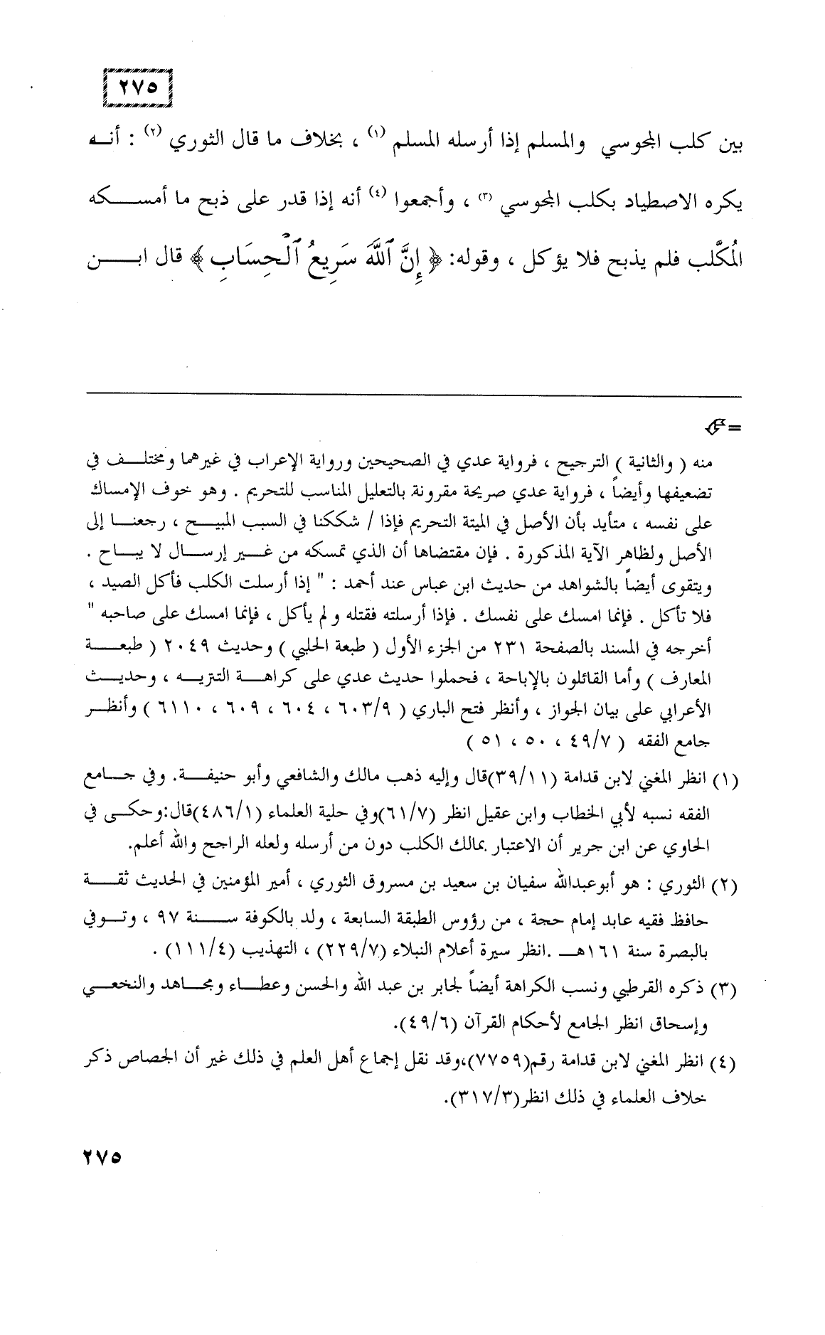 بين كلب المجوسي والمسلم إذا أرسله المسلم، بخلاف ما قال الثوري: أنه