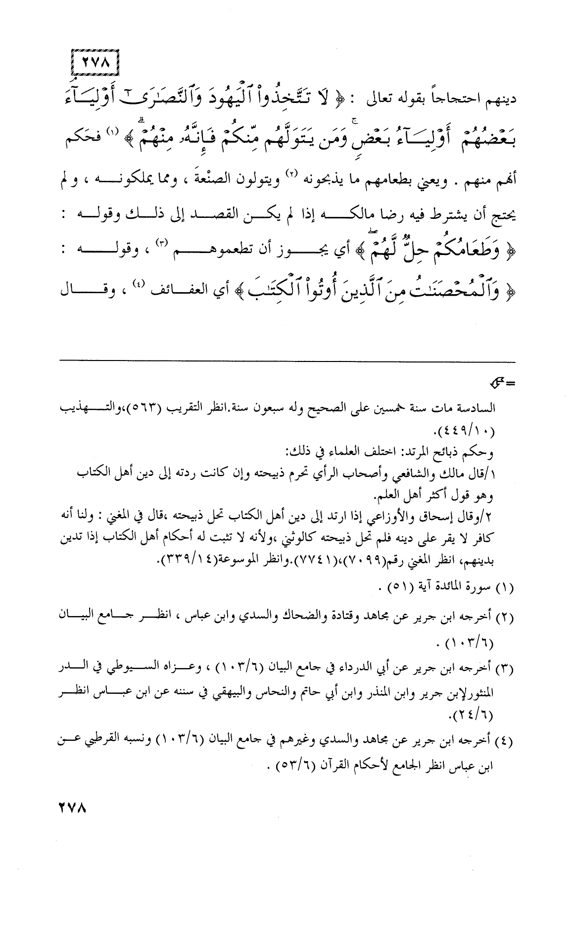 دينهم احتجاجاً بقوله تعالى: (لَا تَتَّخِذُوا الْيَهُودَ وَالنَّصَارَى أَوْلِيَاءَ بَعْضُهُمْ أَوْلِيَاءُ بَعْضٍ وَمَنْ يَتَوَلَّهُمْ مِنْكُمْ فَإِنَّهُ مِنْهُمْ) فحَكم