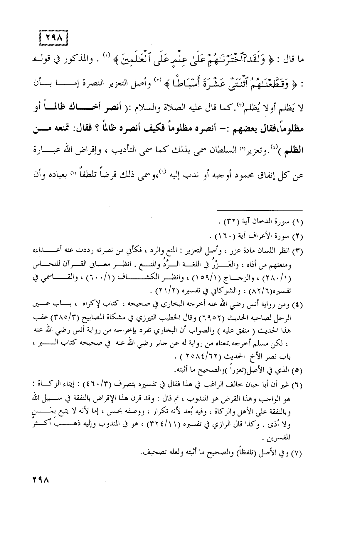 وأصل التعزير النصرة إما بأن لا يَظلم أولا يُظلم.