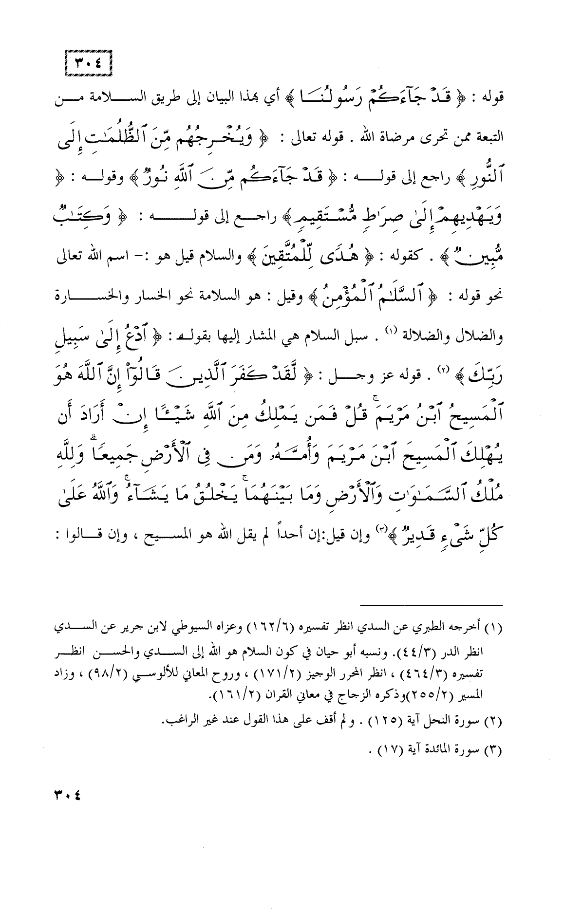 وقوله: (وَيَهْدِيهِمْ إِلَى صِرَاطٍ مُسْتَقِيمٍ) راجع إلى قوله: (وَكِتَابٌ مُبِينٌ). كقوله: (هُدًى لِّلمُتَّقِينَ).