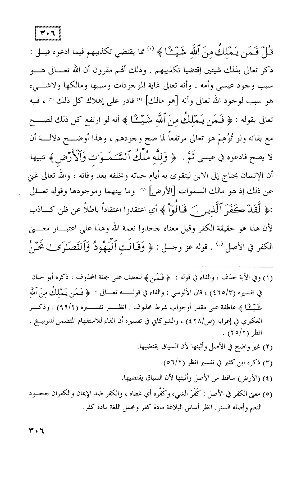 سبب وجود عيسى وأمه. وأنه تعالى غاية الموجودات وسببها ومالكها ولا شيء هو سبب لوجود الله تعالى وأنه أهو مالك قادر على إهلاك كل ذلك، فنبه تعالى بقوله: (فَمَنْ يَمْلِكُ مِنَ اللَّهِ شَيْئًا) أنه لو ارتفع كل ذلك لصح